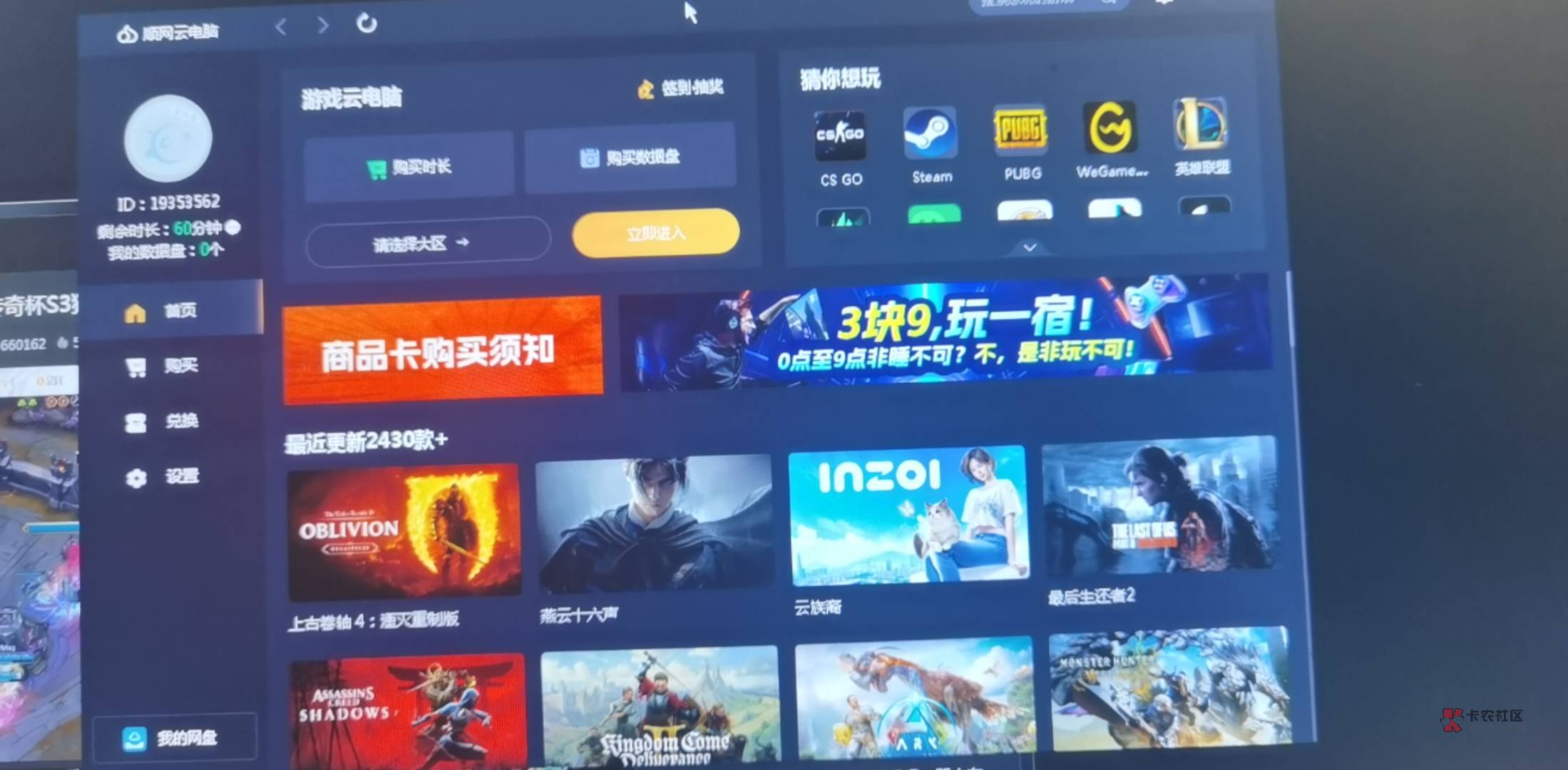 顺网云电脑注册角色,然后用电脑升级。