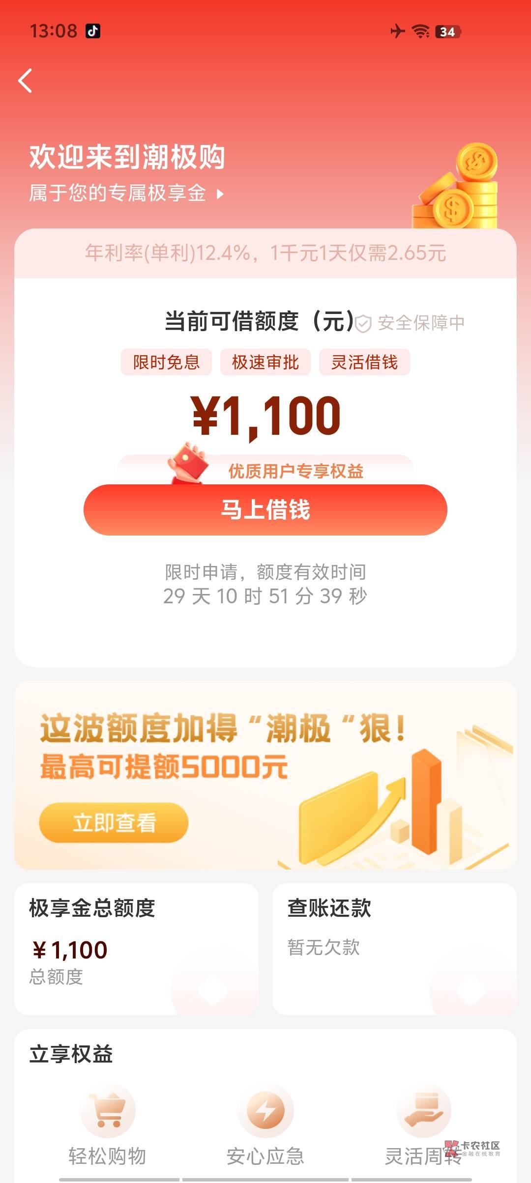 他意思是说,额度刚到