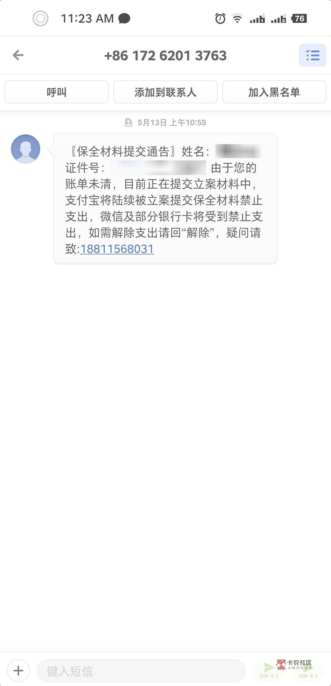 我就怕不通知直接给我冻结了。
