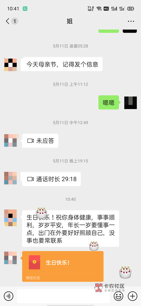 我也是 我父母有时候都不记得我生日 我姐每年都是第一个发信息给我 当初入坑负债近百个 我姐帮我填了40多个