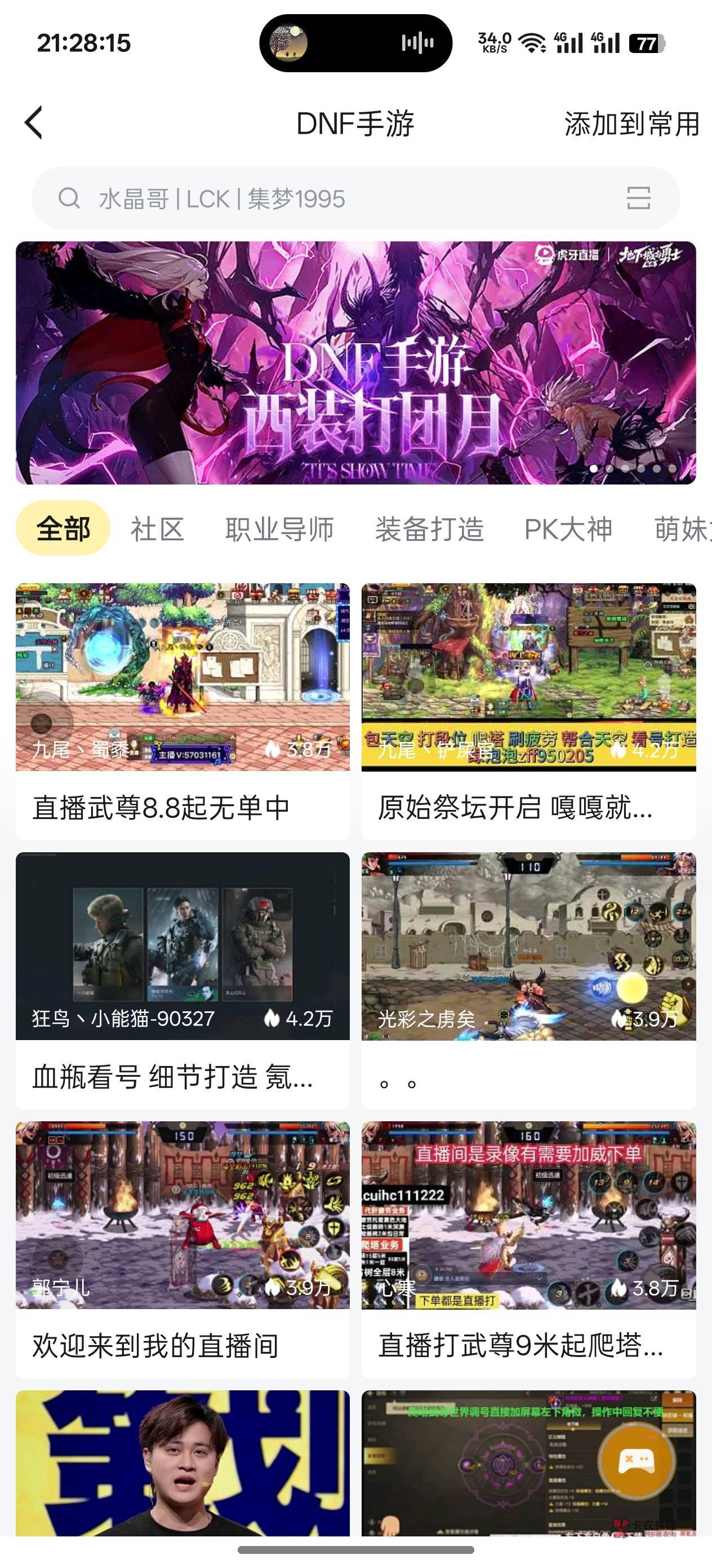 虎牙搜dnf手游 进去横幅 西装节奥兹玛