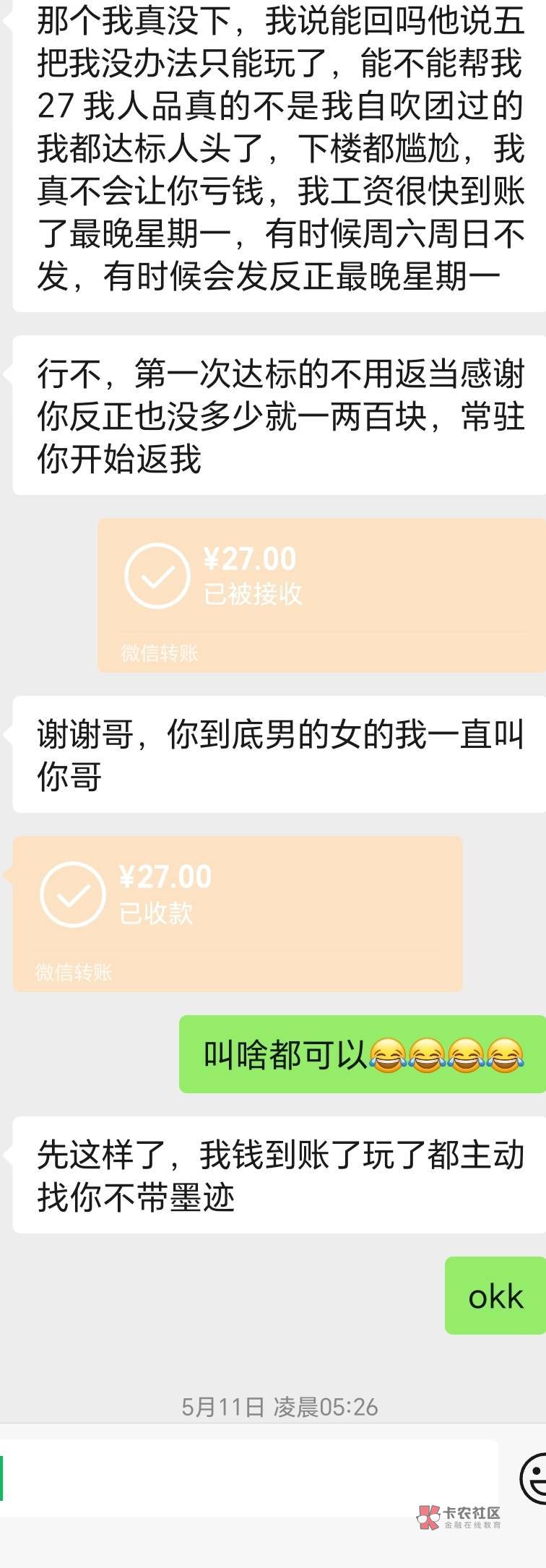 有借有还,真事,17年有个卡农老哥每次找我拿50,每次给他都准时还,后面也借过300.500的也都说好时间就还,我有次到绝境找他借了5000,他有也给我了,后面半个月左右发了提成还给他了,后面逢年过节我们还会相互问候,再后来有个小半年他都没有联系过我,我那段时间一直出差也很忙也没注意,在后面我想找他问问他最近怎么样发现微信已经注销了,也不知道他怎么了……之后卡农遇到团饭的老哥也给过几次都没还我,后面我就注销卡农号了,再也没有当初真老哥相互帮衬的赶脚了。