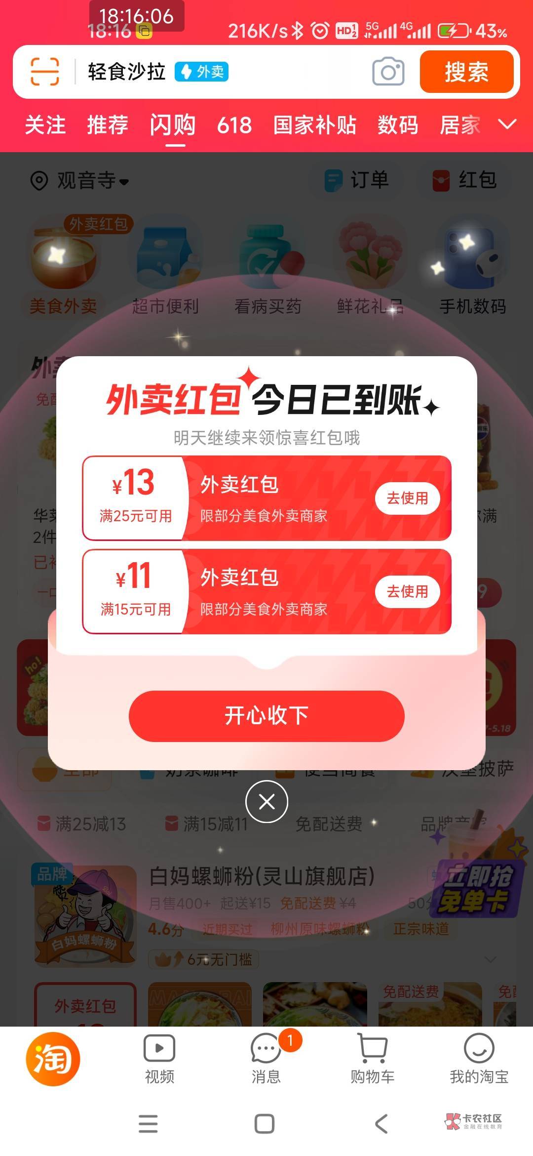 没叠加也比饿了么便宜 饿了么送的还慢