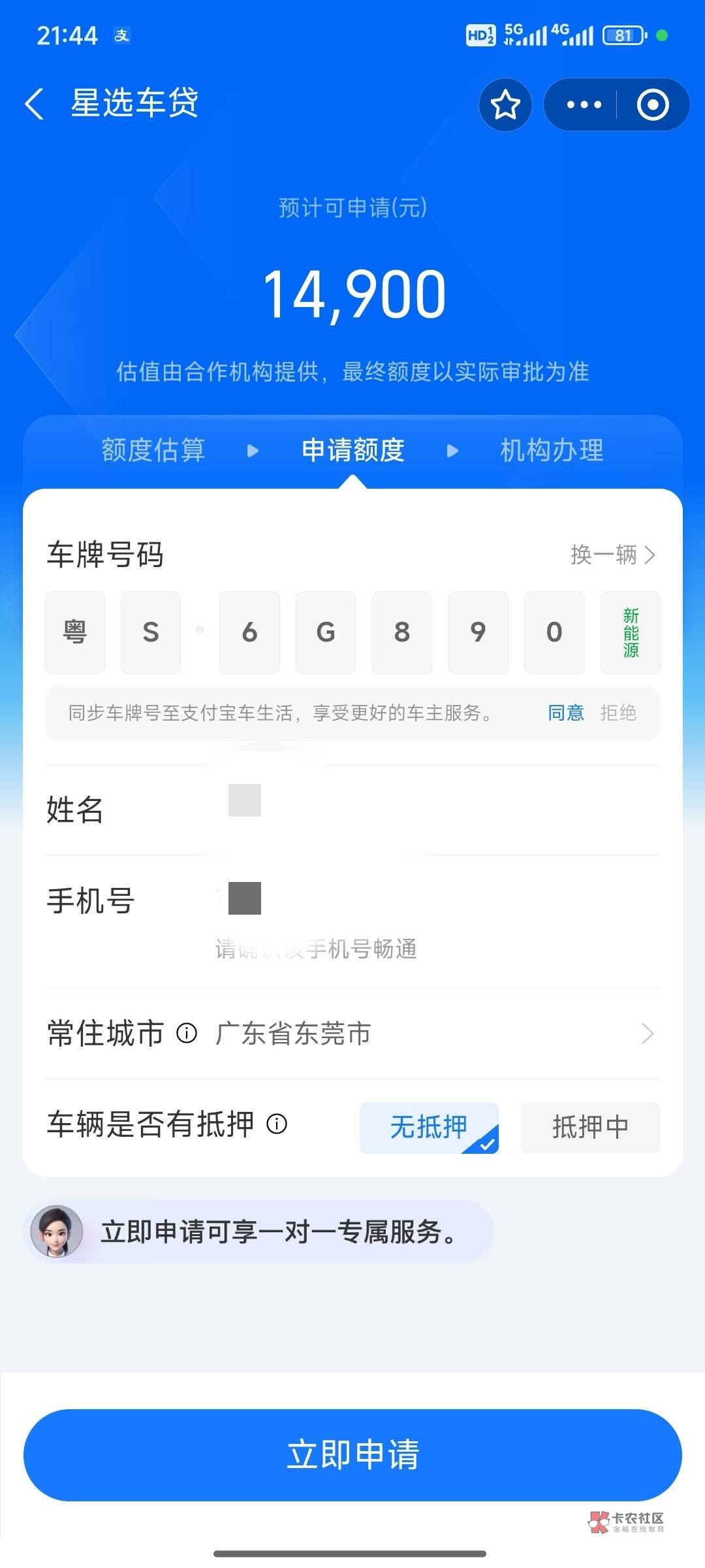 就算有绿本应该也不会给我下的,我征信有呆账,再说了这个车牌是我乱输进去的
