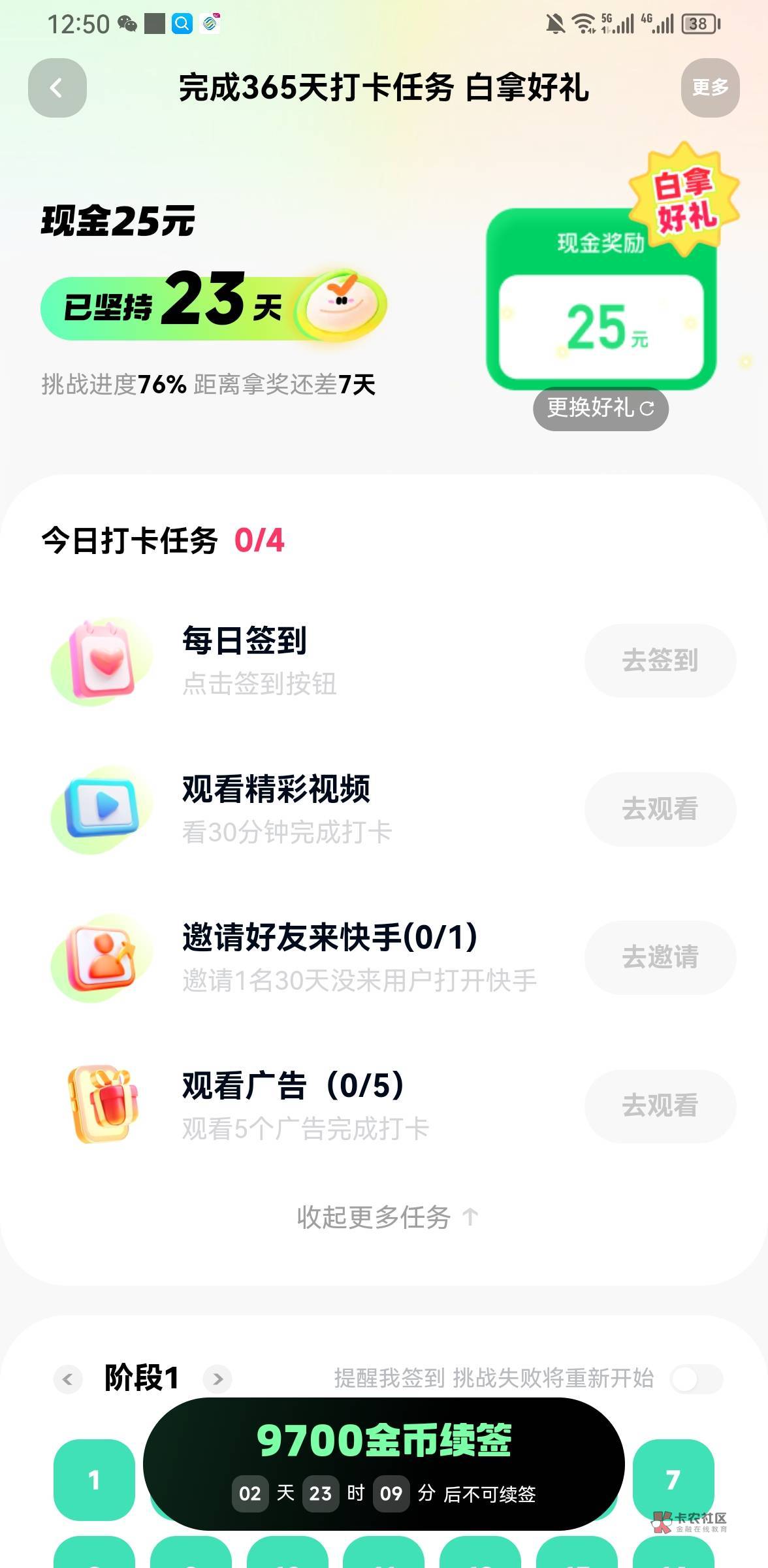 ,88大毛我都提现到了花完了,一阶段是签到,二阶段是签到加五个广告,三阶段是签到,15个广告,看30分钟快手我不是懒人窝的 发表于 2025-05-18 00:58