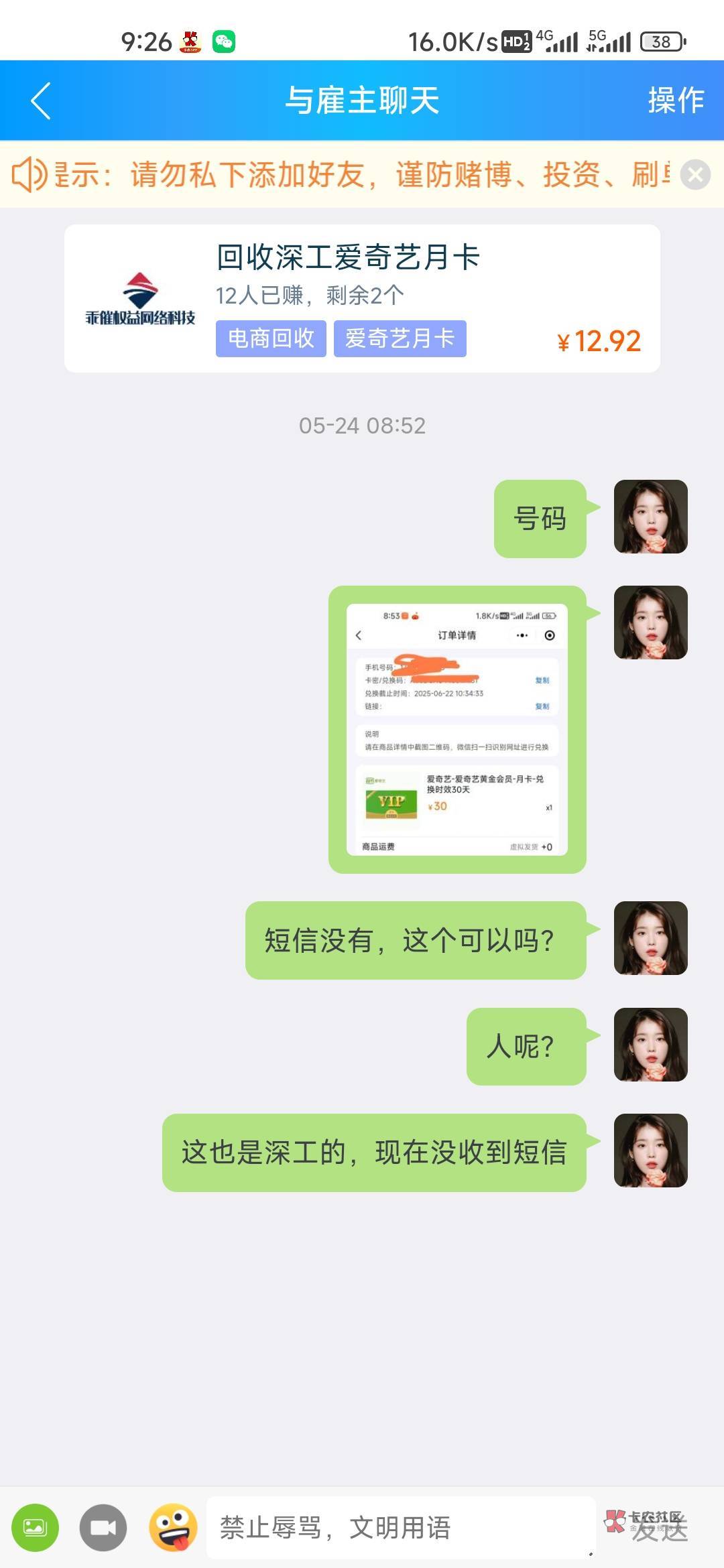 没短信,就发兑换给他?