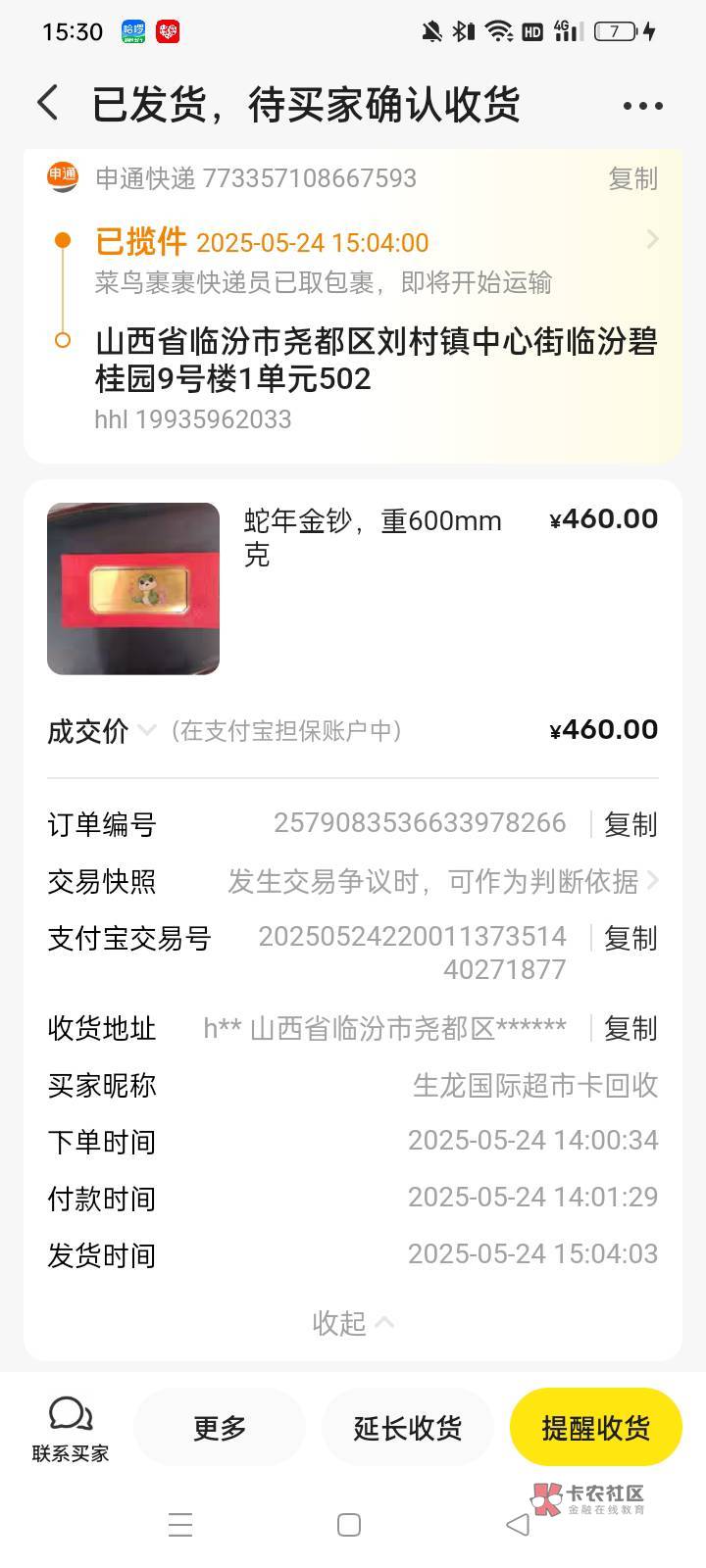 他确认收货你就能收到