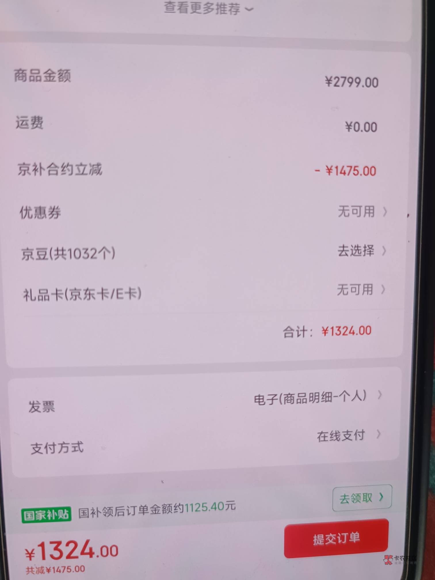 你这提交完订单不还是1000多吗?