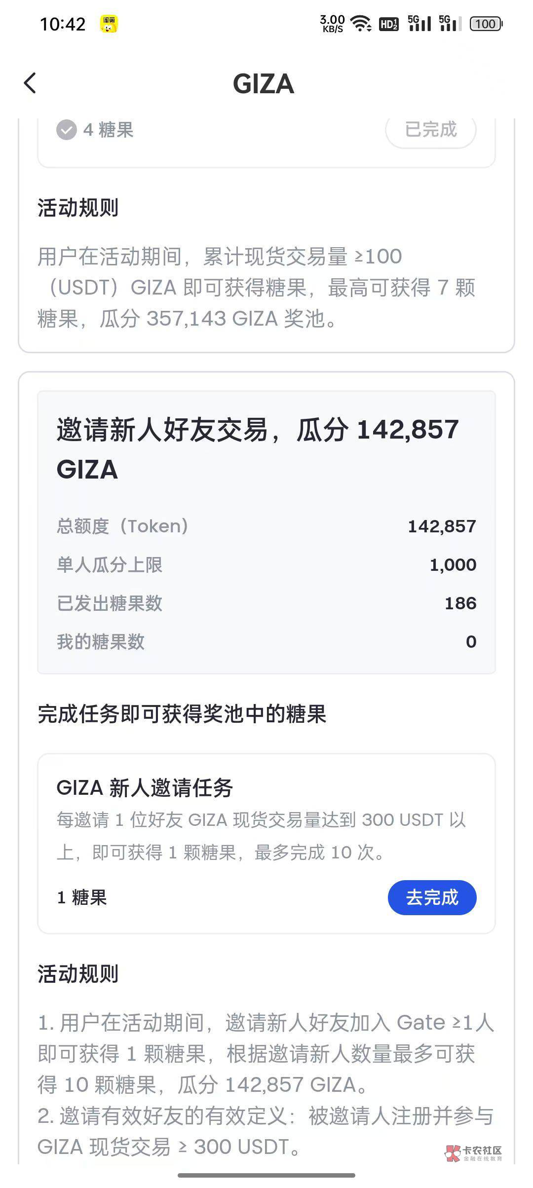 你得是新用户,然后你还得刷300U现货,起码得有个三四百本金吧,我给你搞100块,你自己得了这100,你还能去邀请一个人,现货手续费1u都不到