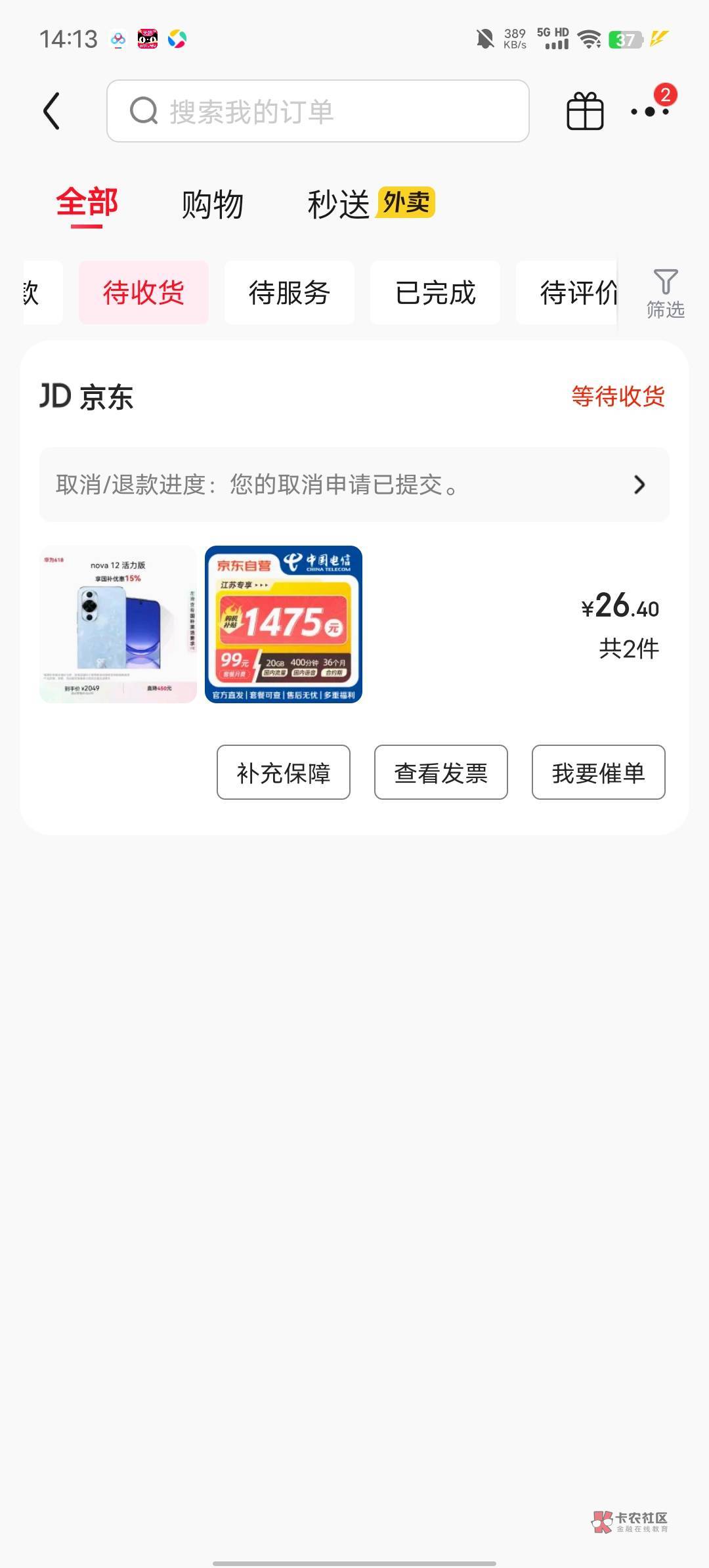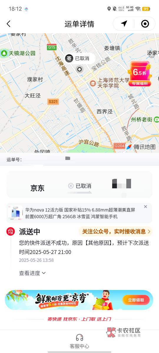 你打电话问问快递员怎么说?是不是他给你取消的