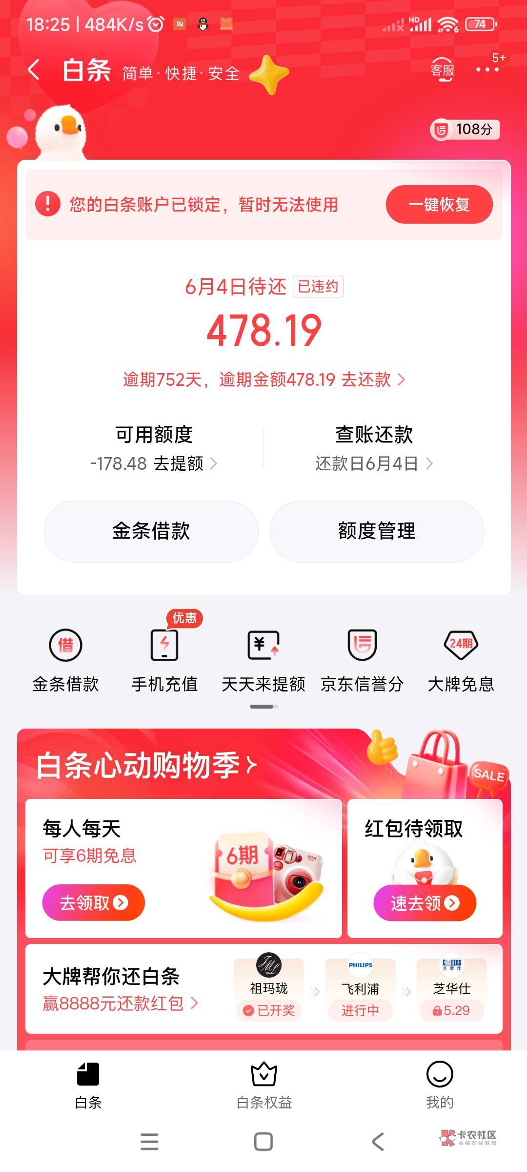 我的是白条逾期几年了,被锁了的