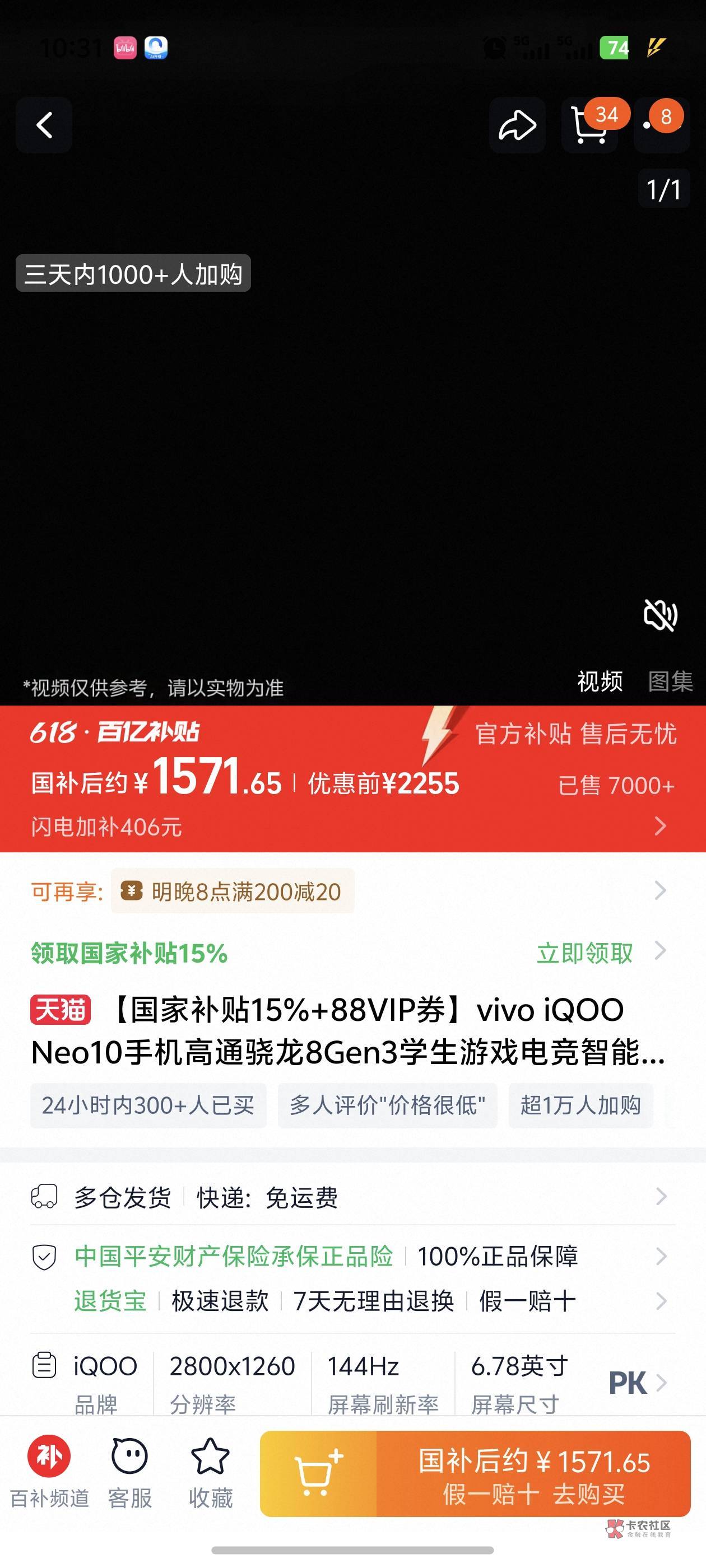 好像骗你一样,我用的就是iqooneo10,昨天点开淘宝时候弹出来的不到1500,今天涨了点
