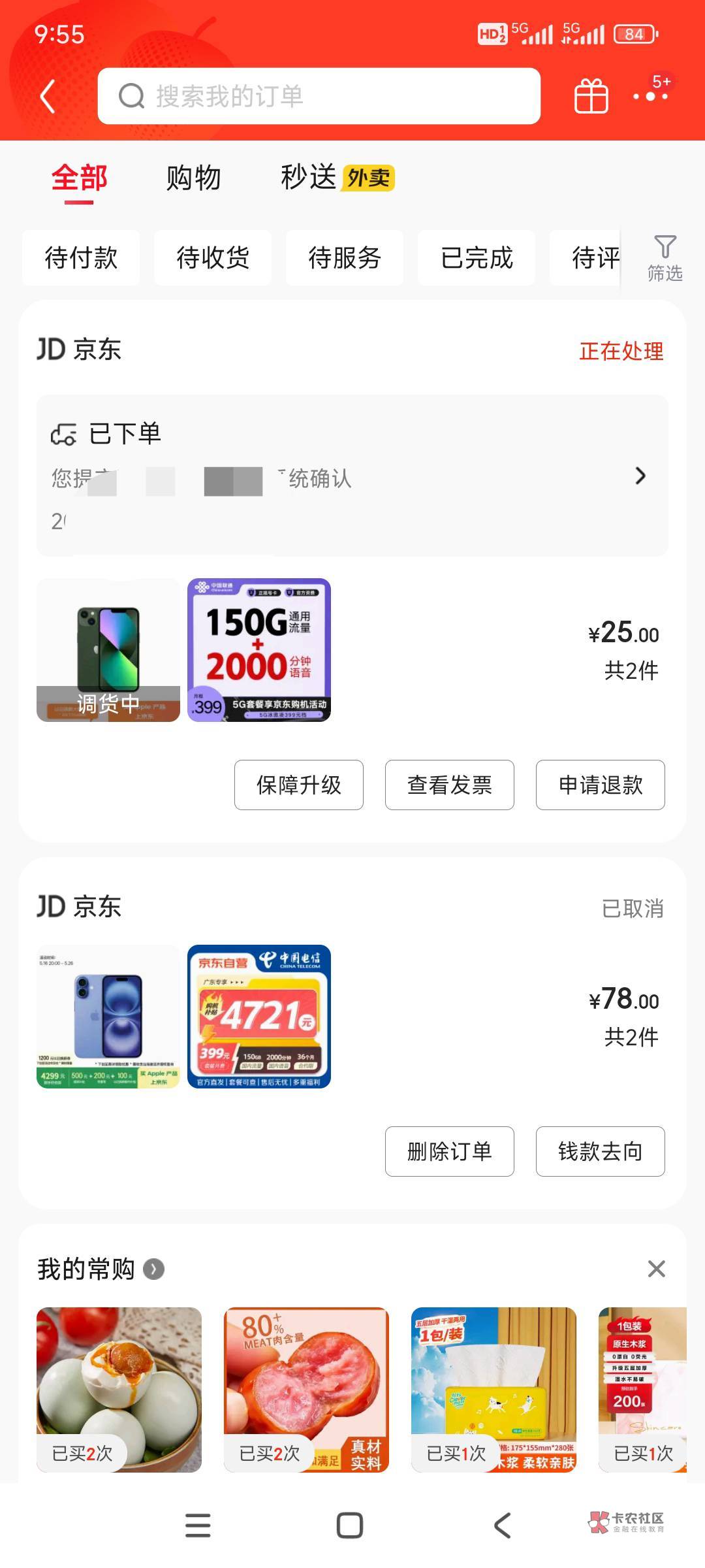 我下的苹果不发货,我然后下的安卓机,下午就会配送中