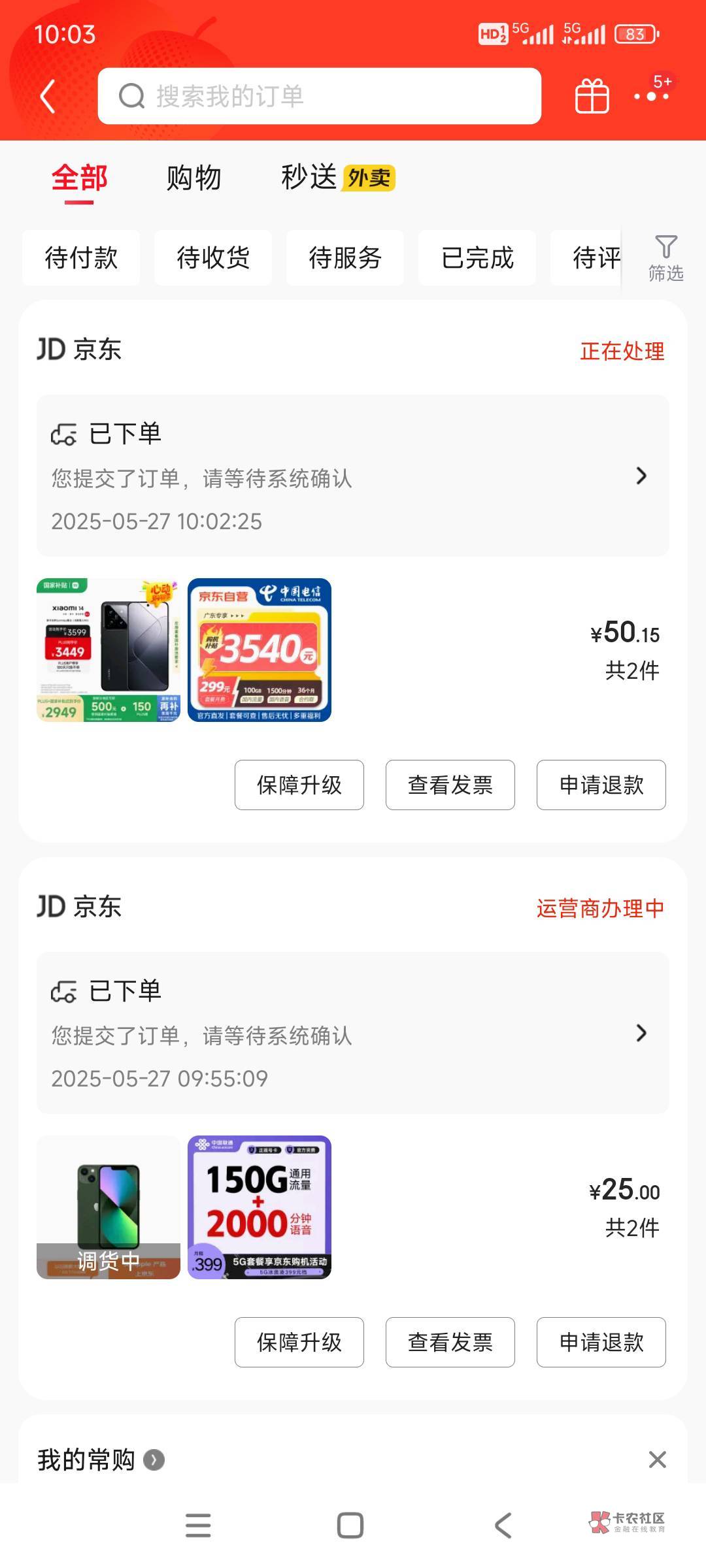 直接下两单阿?