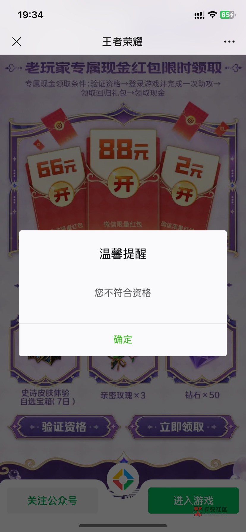 礼包也领不了。没资格说我