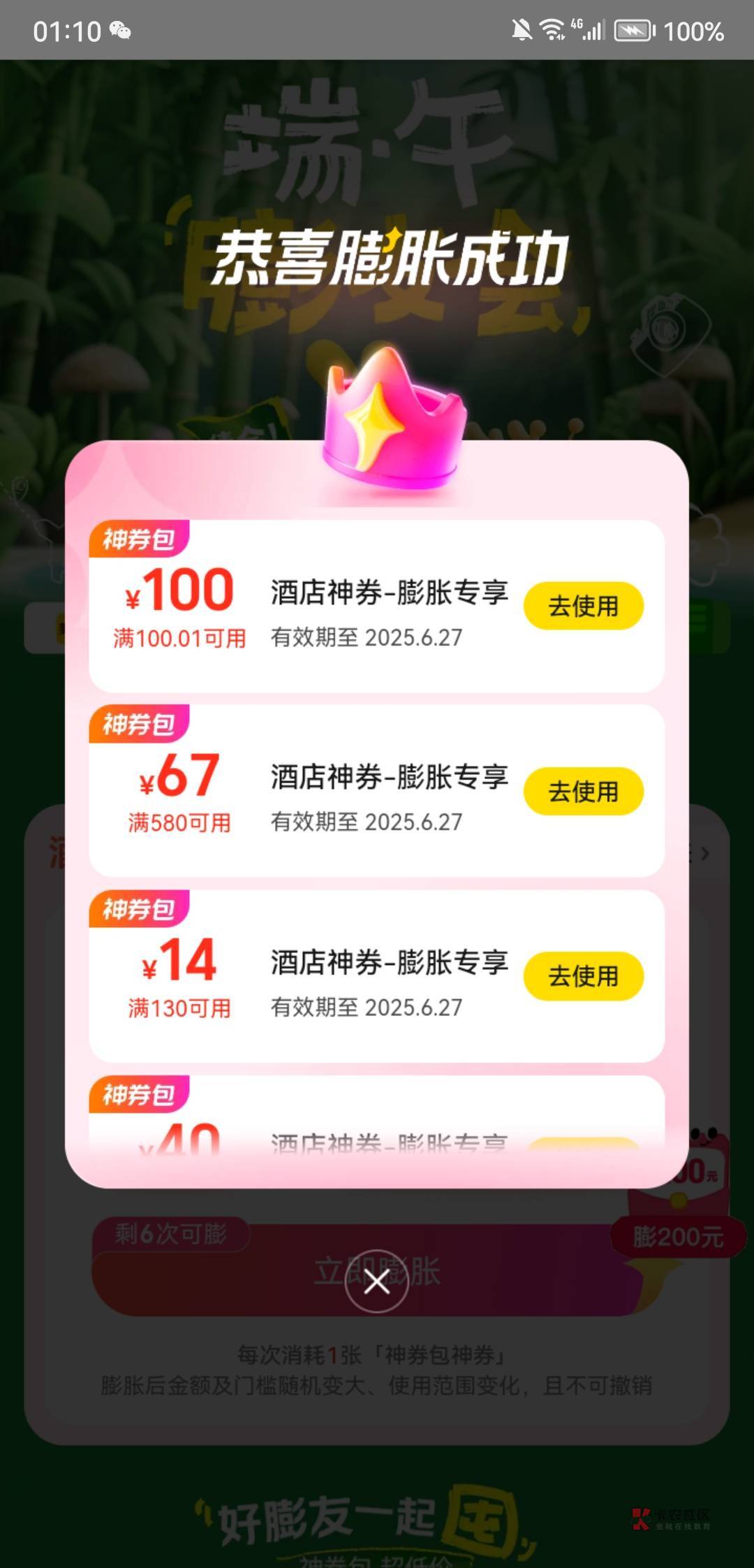 我从十一点半开始,一直买了膨胀完没中就退,然后接着买接着退,膨胀了七十一次才出,最后这个券包花了7.9毛