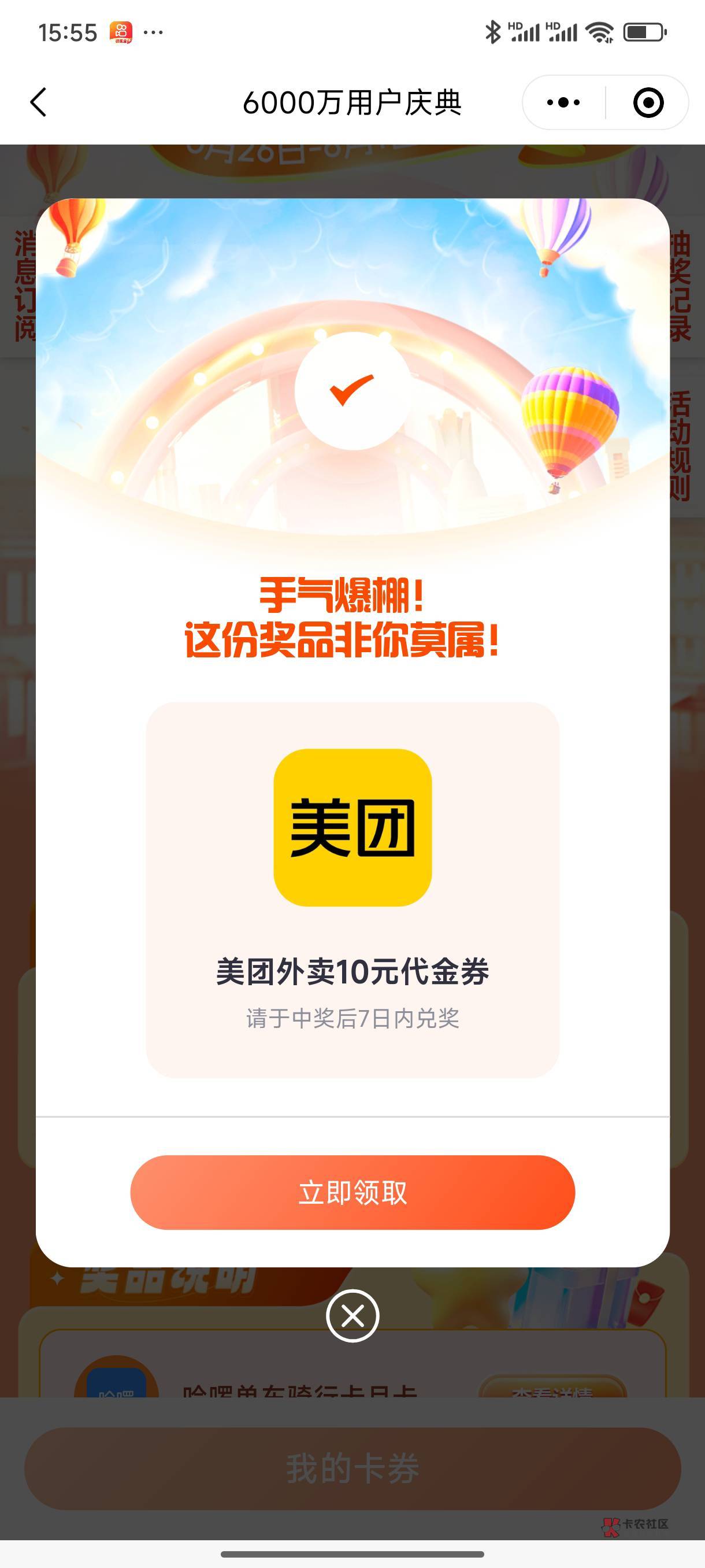 你能说出这种话就知道你不怎么点外卖,你的膨胀券基本上没有超市能用,我抽的这个券可以卖6-8块,闲卡宝就能卖,你膨胀券18的就能卖2块还没人买