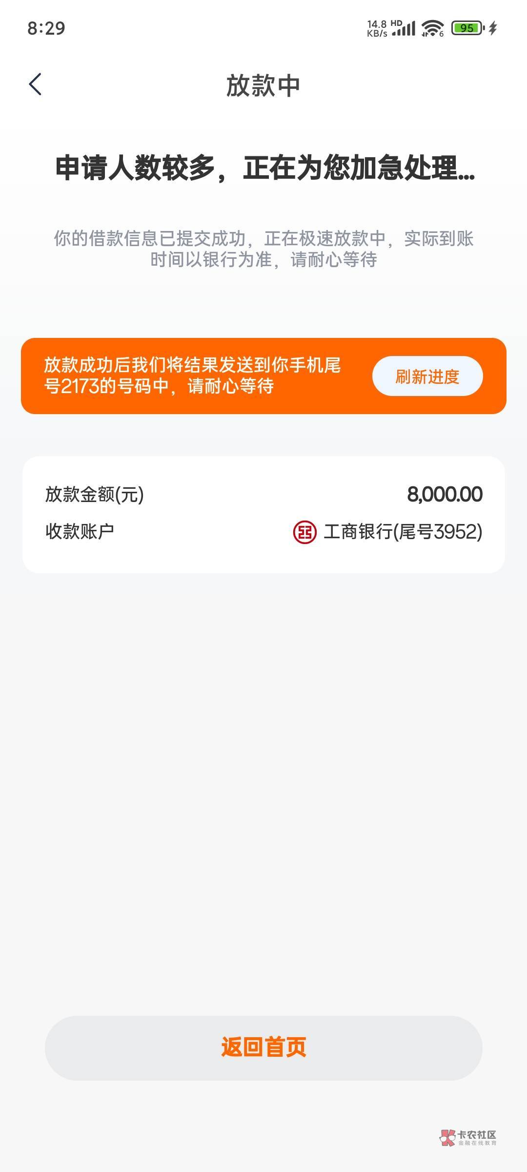 我当时5分钟到账,廊坊银行放款的