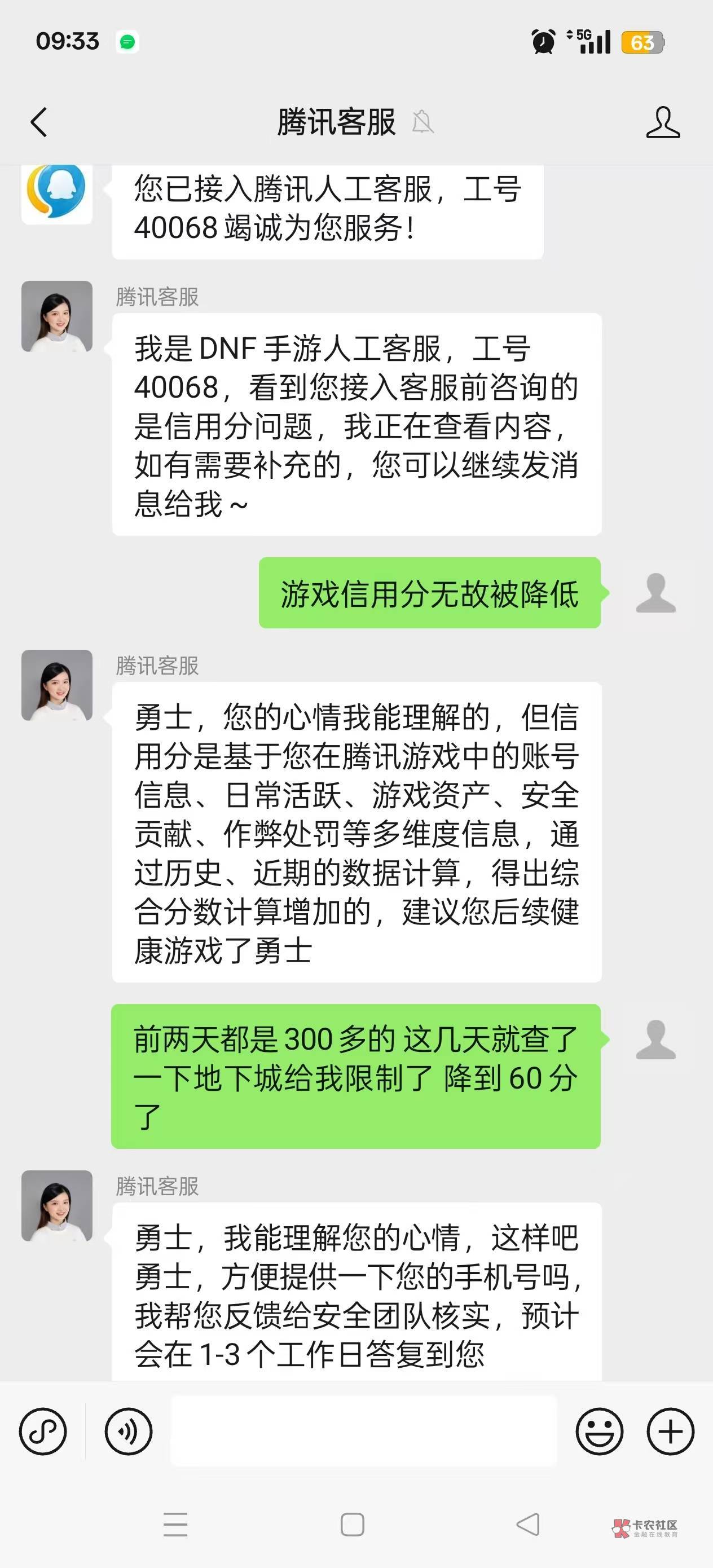 腾讯客服 发 地下城手游无故导致游戏信用分降低 出现表格填就行
