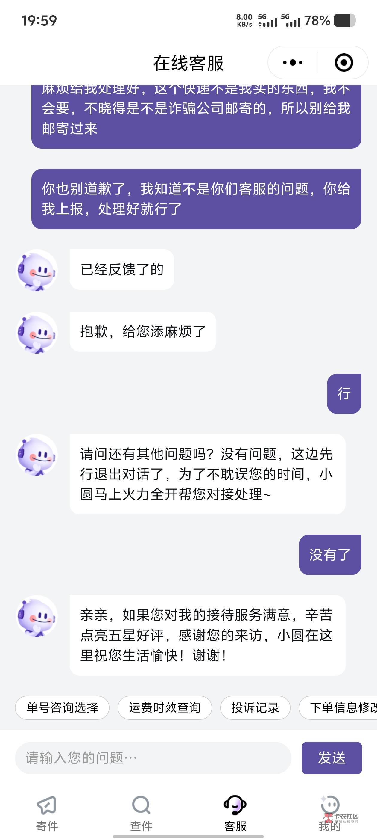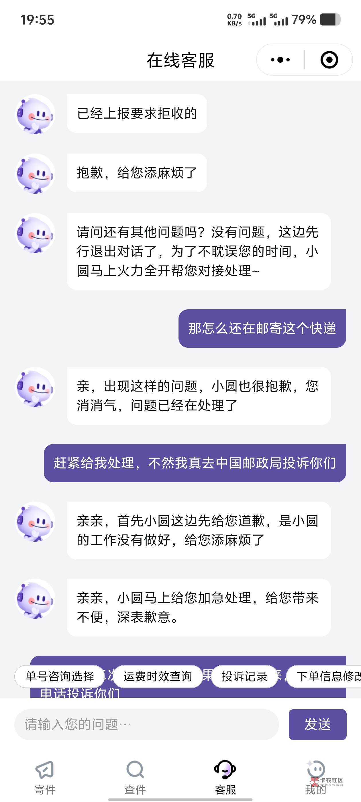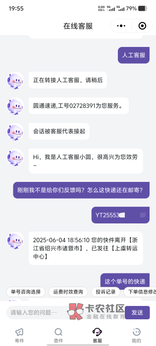 圆通联系客服拒收没用,只有快递员派送的时候联系快递员拒收