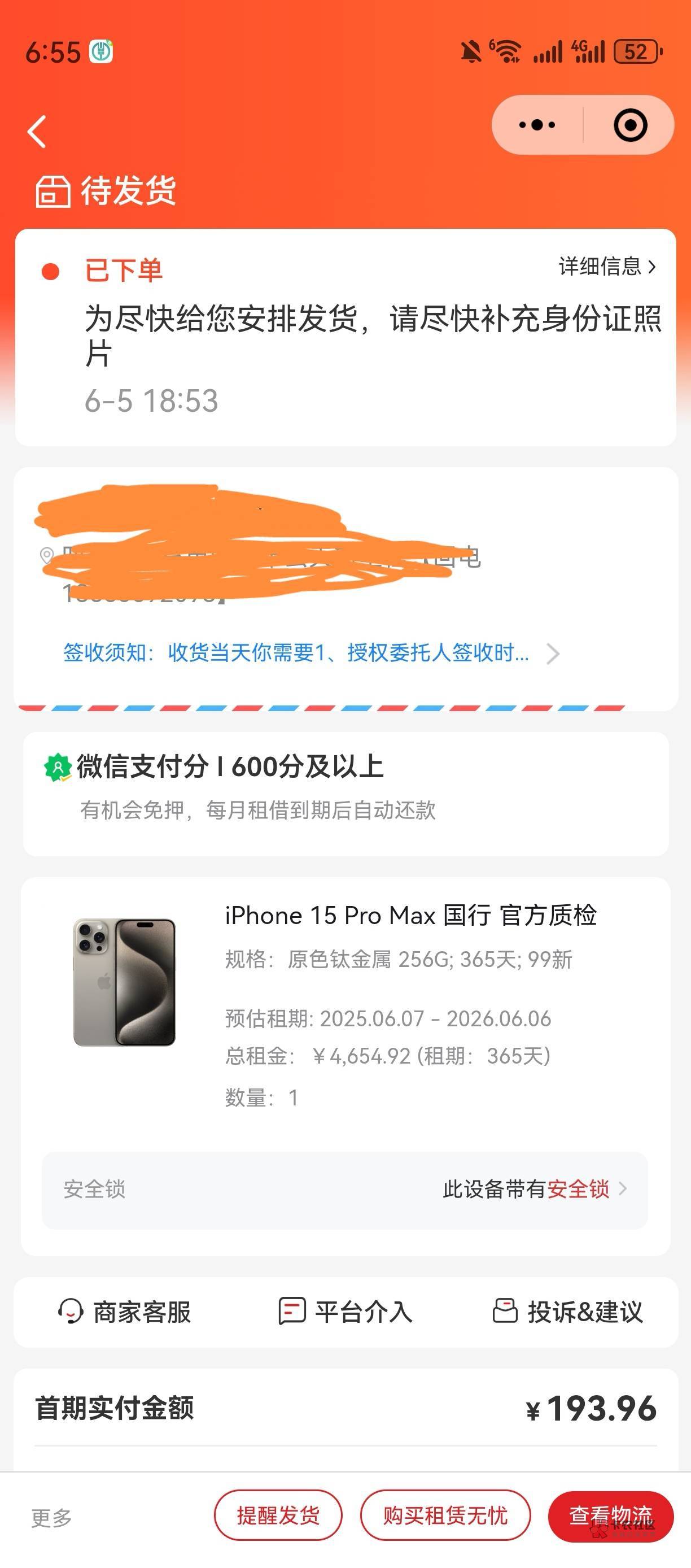 支付193发货?不用付3期之类的?