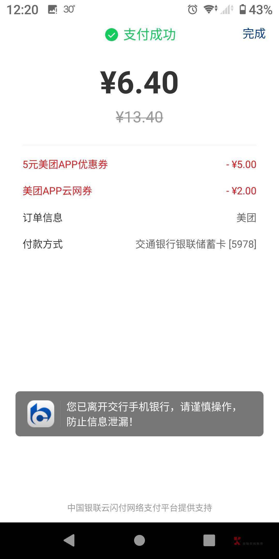 美团app选择云闪付然后选择交通银行app支付,交通要开通云网支付