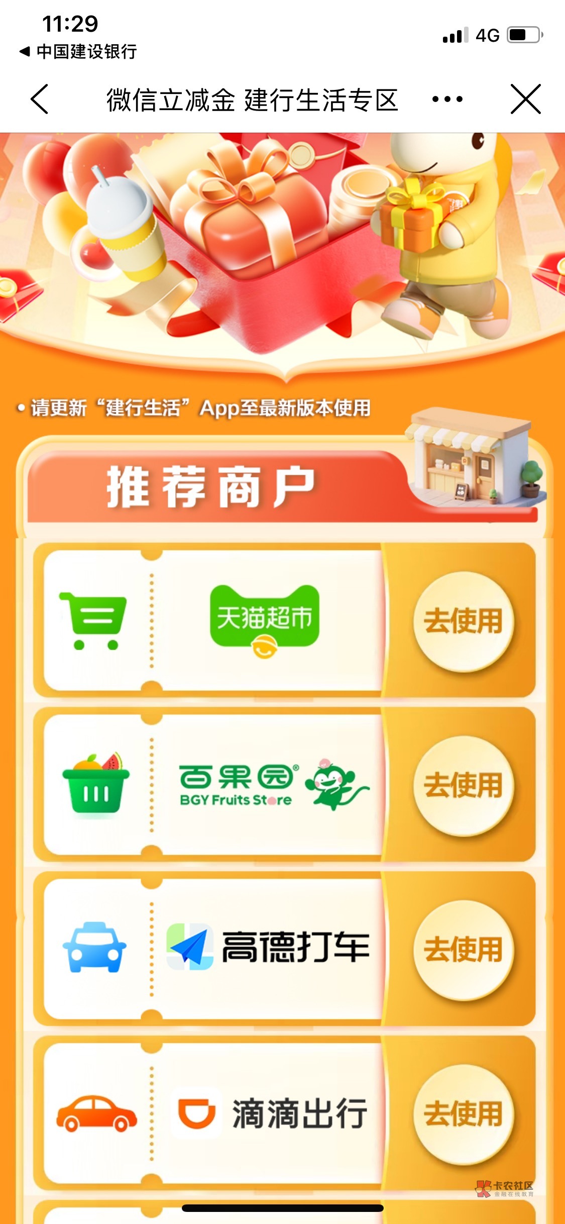 …首先你建行生活得有券 就是建行宝箱抽的那个京东券 建行没券微信这个用不了…等抽到券再说吧