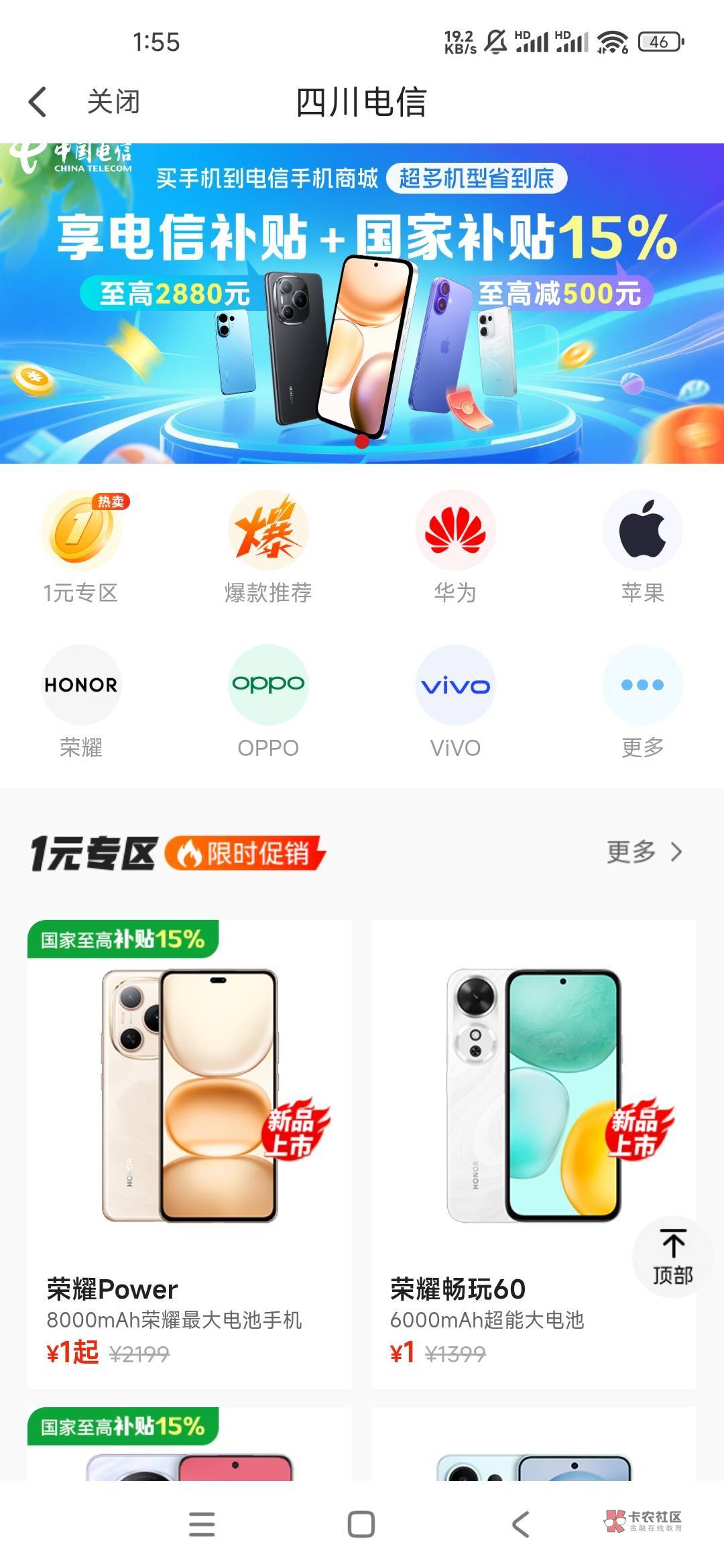 翼支付橙分期,一元购机