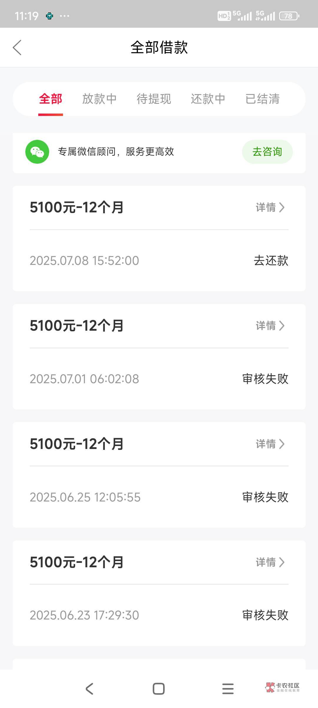 我:)我:),万卡天选了,23年下款过一次,再也没下来过。这次真的意外,每次都是申请完借款就退出不管了。真的天选了@卡农阳阳