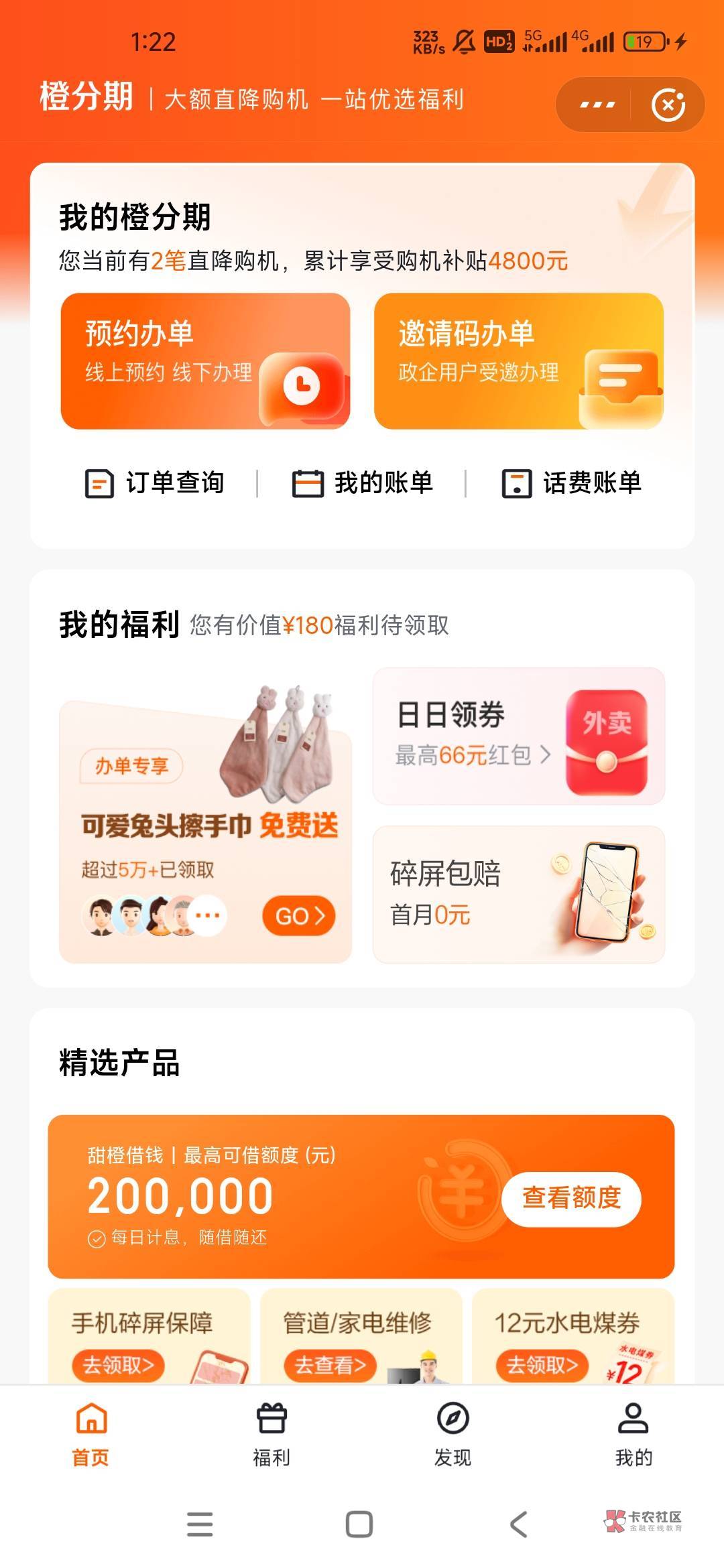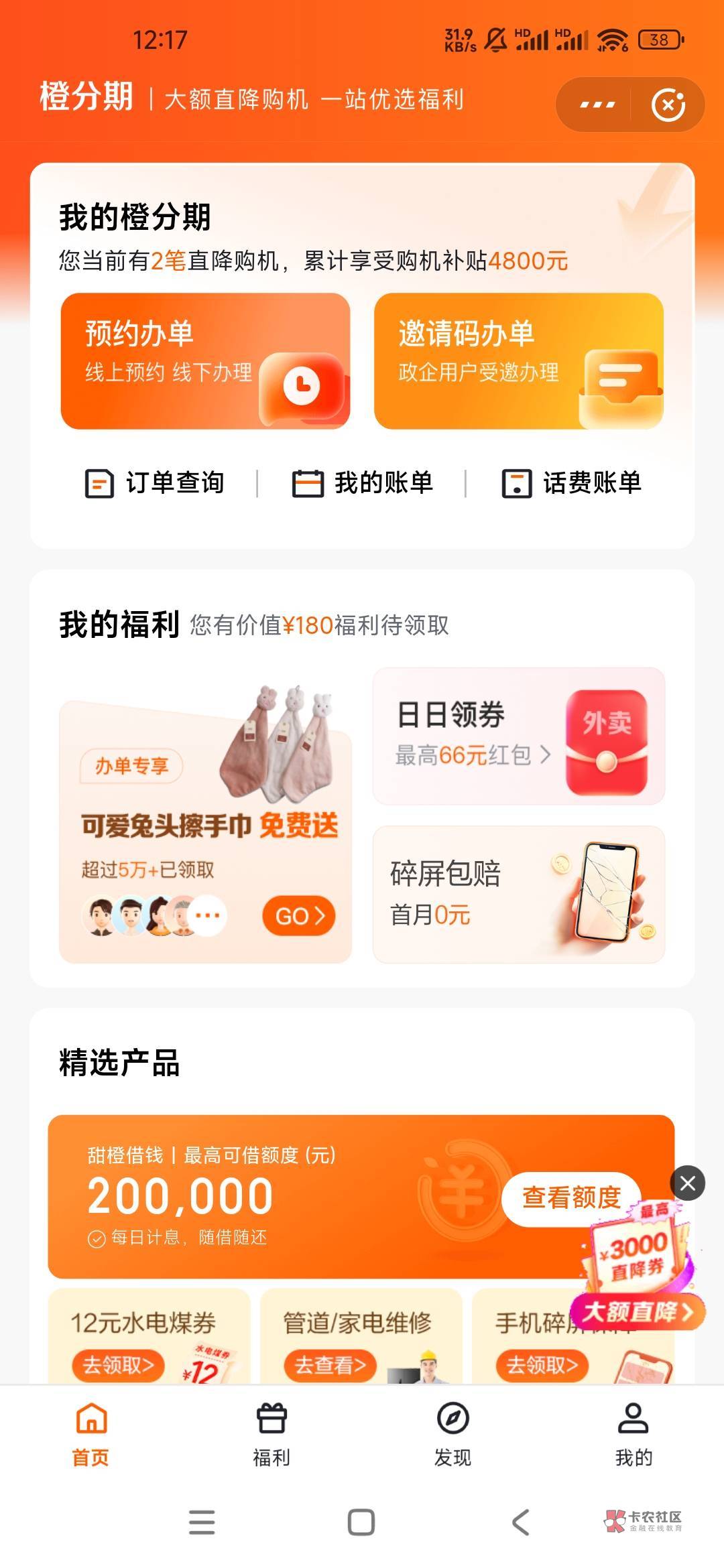 我橙分期一点额度也没有,都是购机后显示享受补贴
