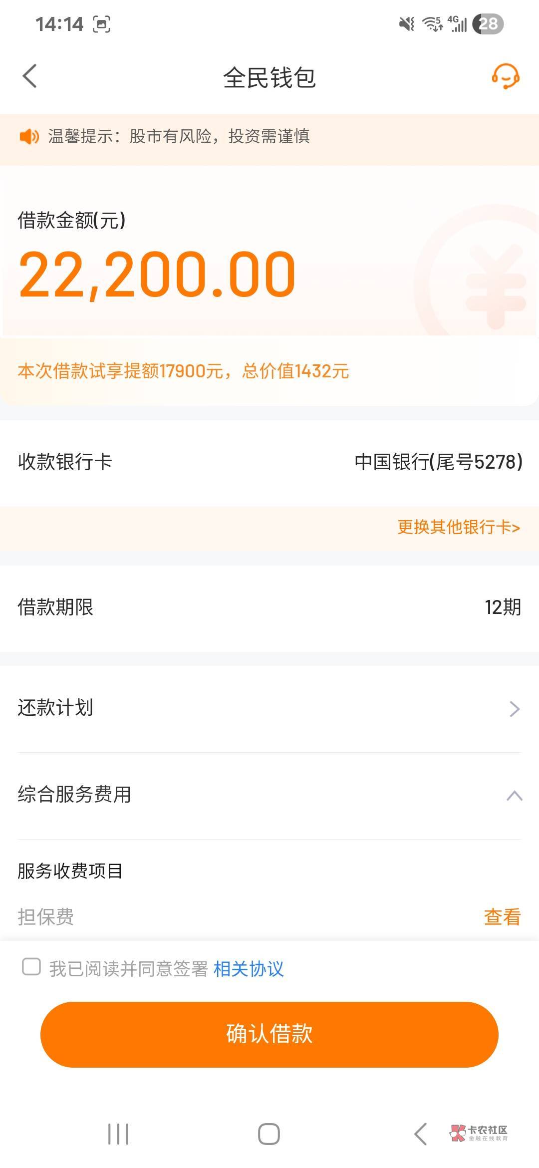 担保费+第三方服务费就得3000 利息倒是不高20.55%