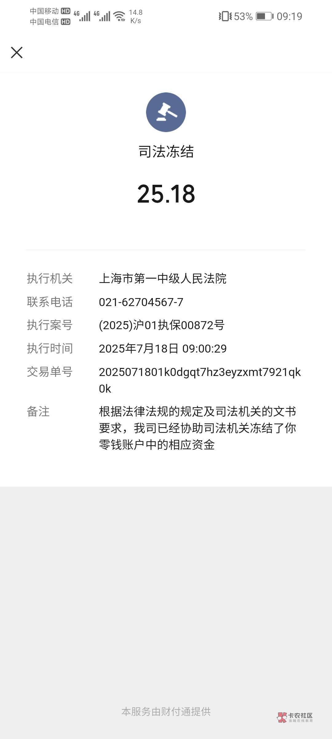 一个通知都没有。我都忘了还有钱有路这个b了。直接就冻