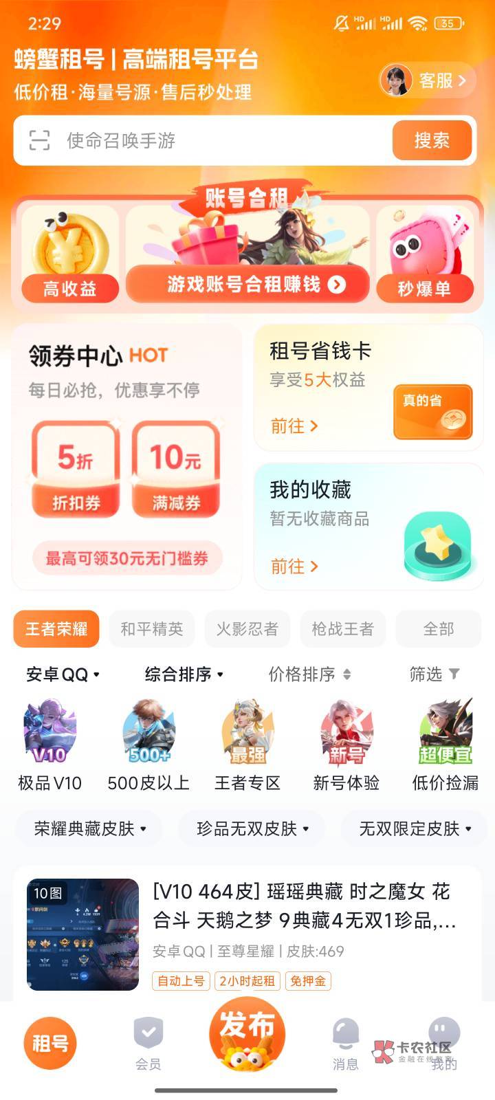 大哥,你这是螃蟹账号好吧,哪是螃蟹租号,螃蟹租号压根没横幅