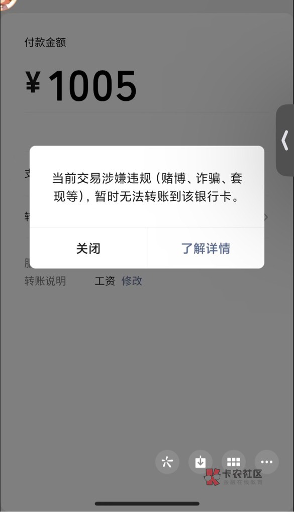 周五用别人的经营码账户给自己转了1005,备注工资,一类卡