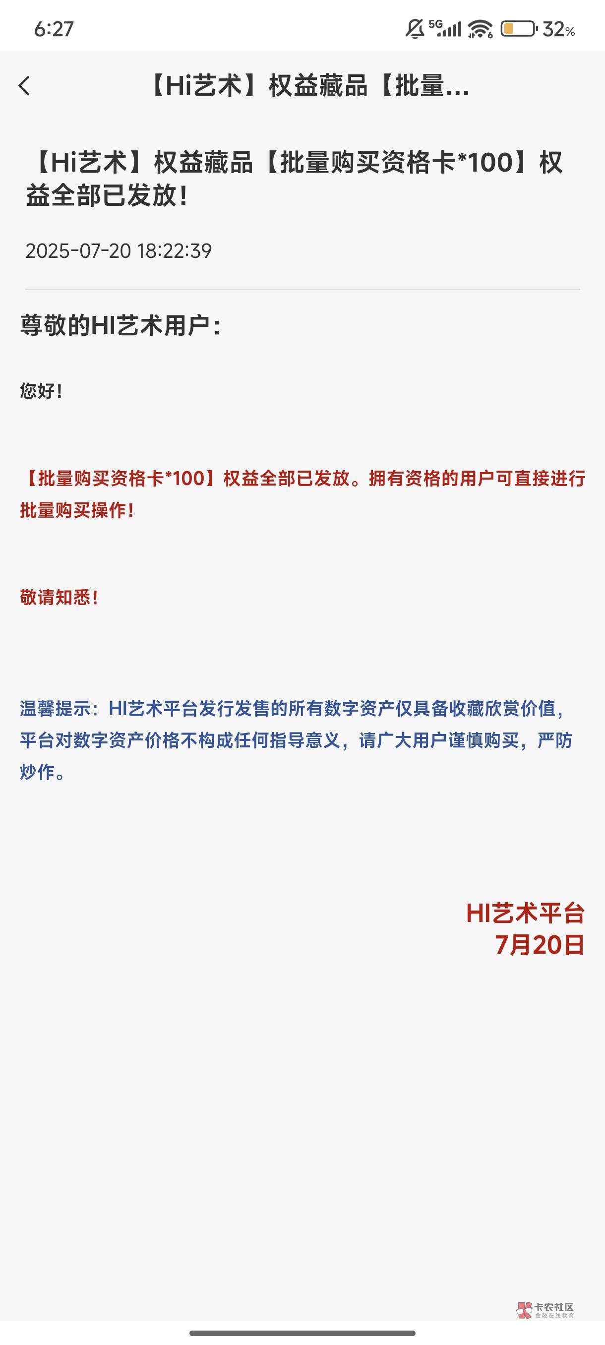 批量卡送购买资格
