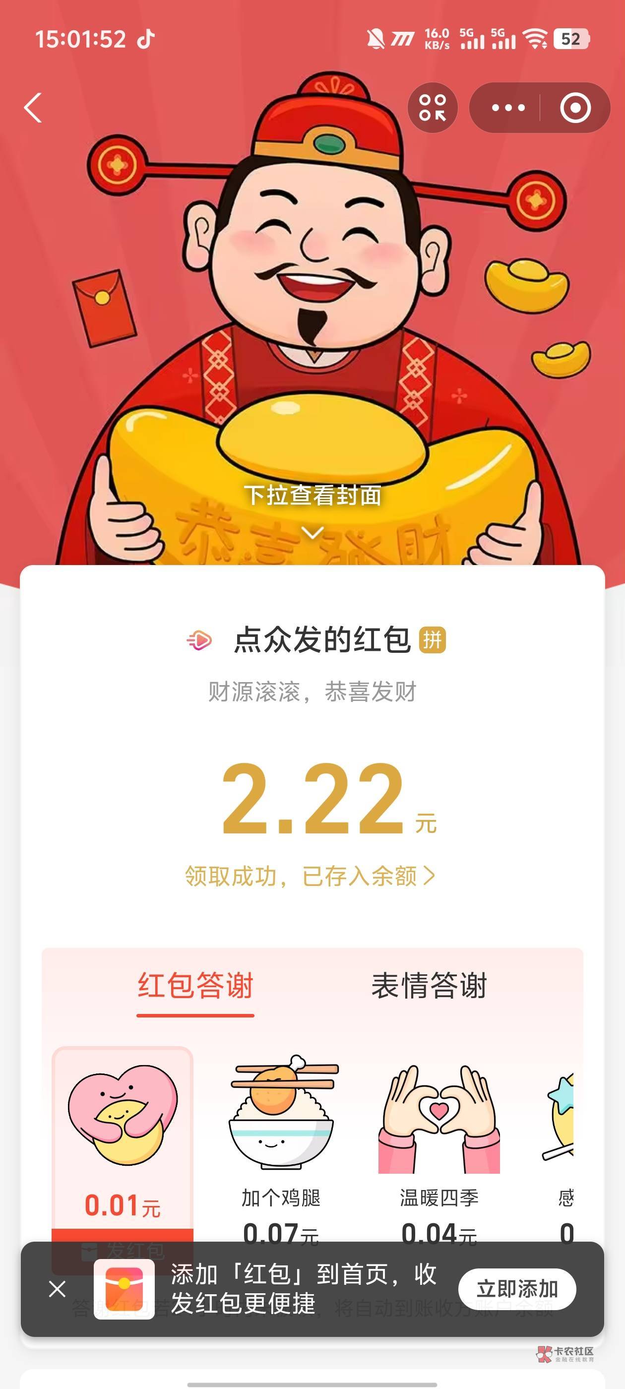 哪有500,到现在都是些几块的红包