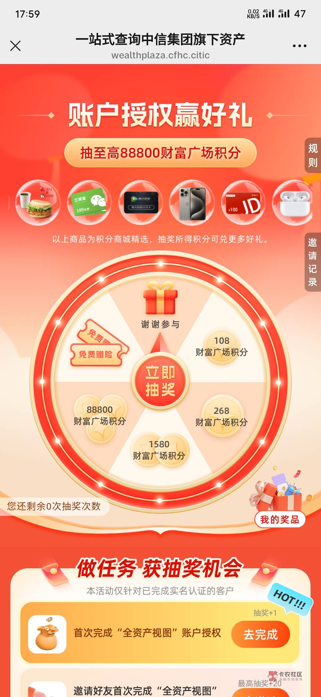 中信财富广场抽奖积分换就好了两个手机号一起做更好