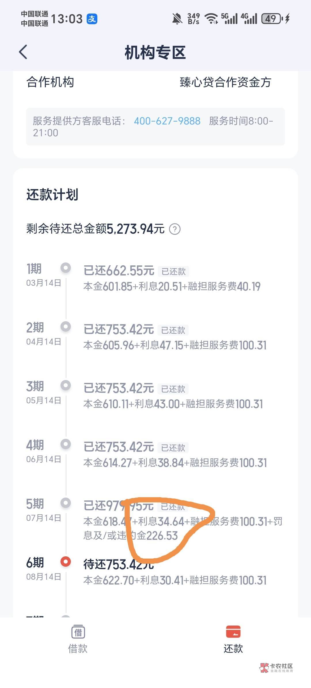 不算利息,7600块,光担保费和罚息,收了我1440多