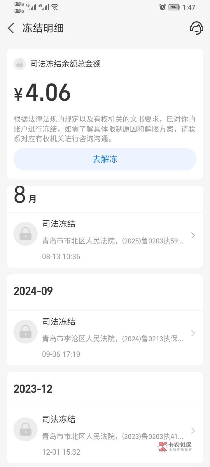 这个是对方申请的,如果过一年对方不申请的话就没事,对方继续申请继续冻