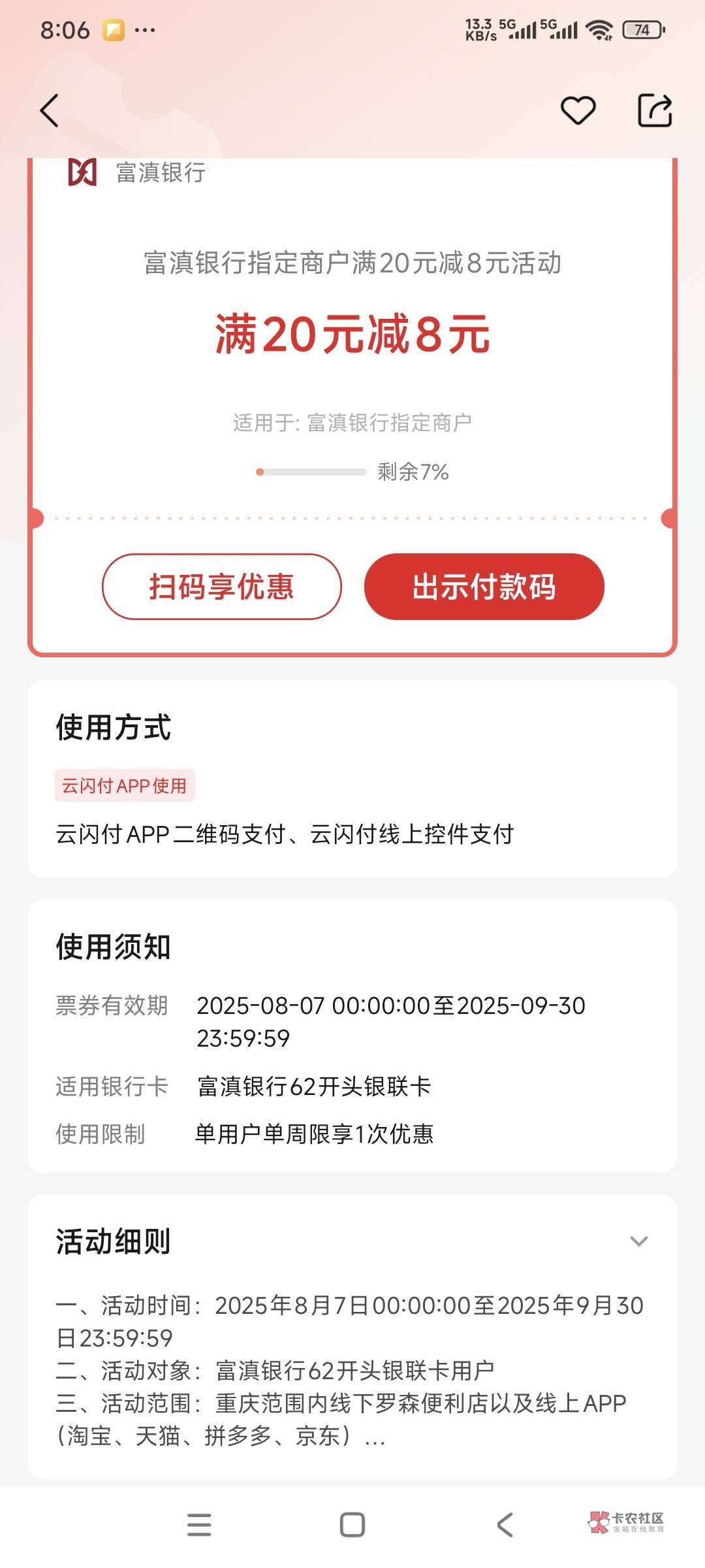 电子卡绑了没有优惠
