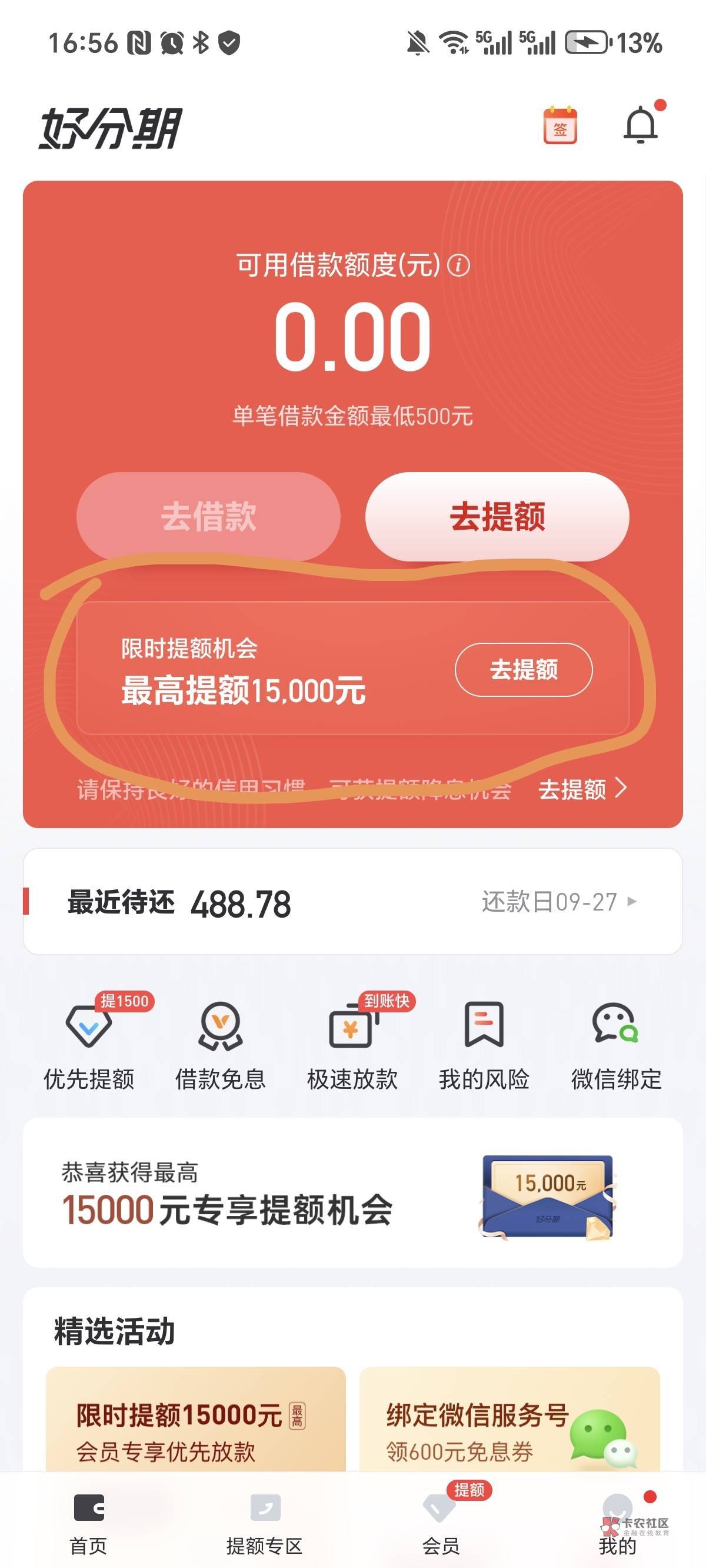 开了超级会员,提升额度500就是不下款,能怎么办