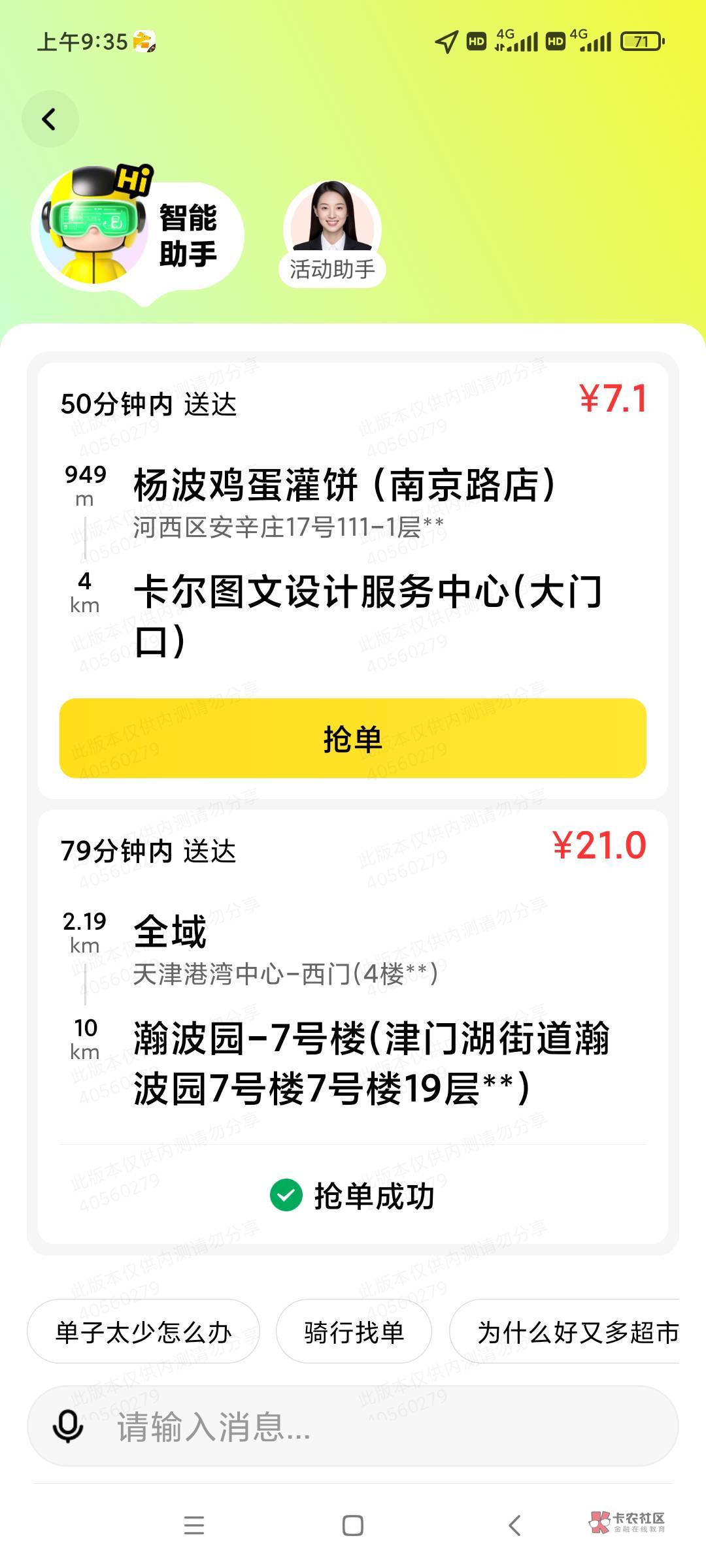 骗你干啥,用机器人能提前十秒左右看到跑腿单,二三十的单多的很,八九十的单我也接到过
