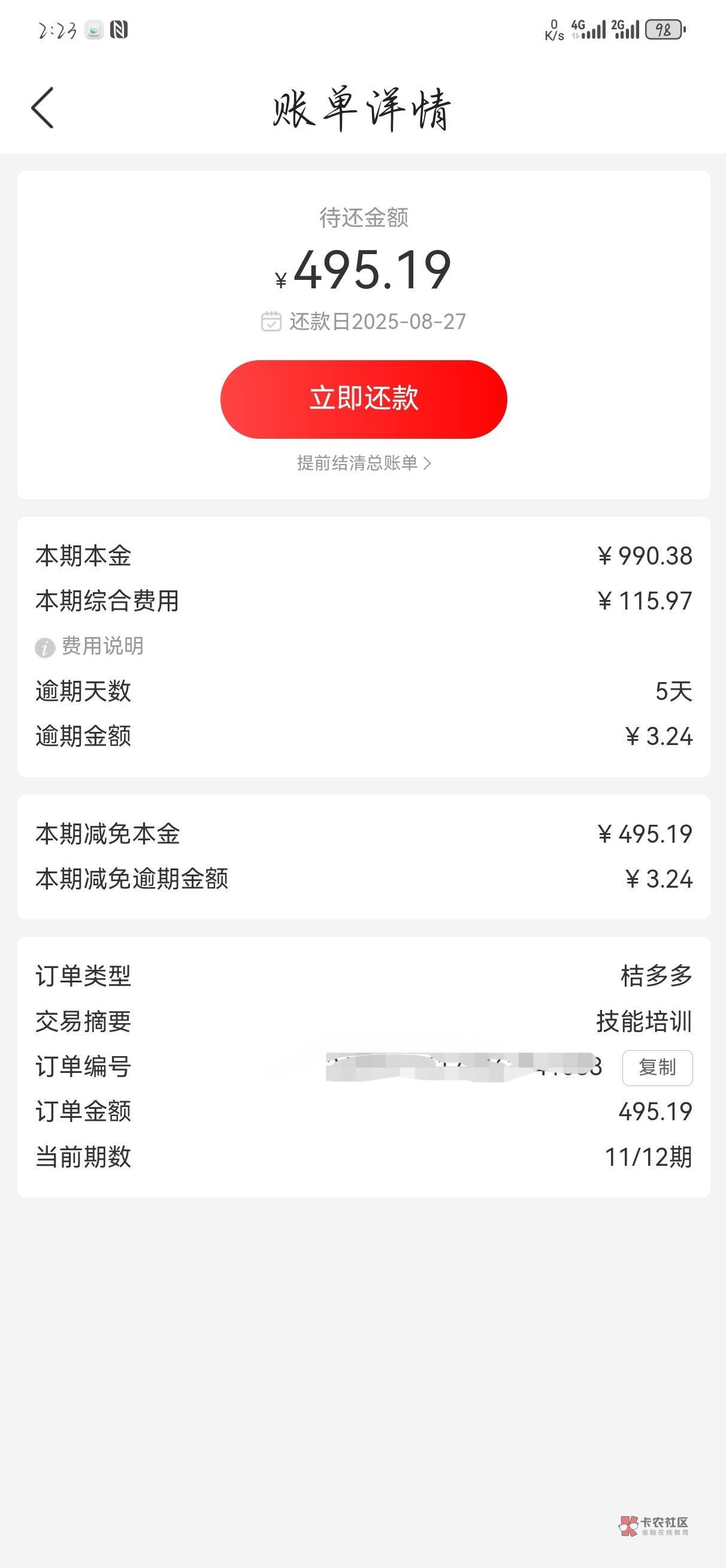 我有一期减了200,后面在逾期不给我减了