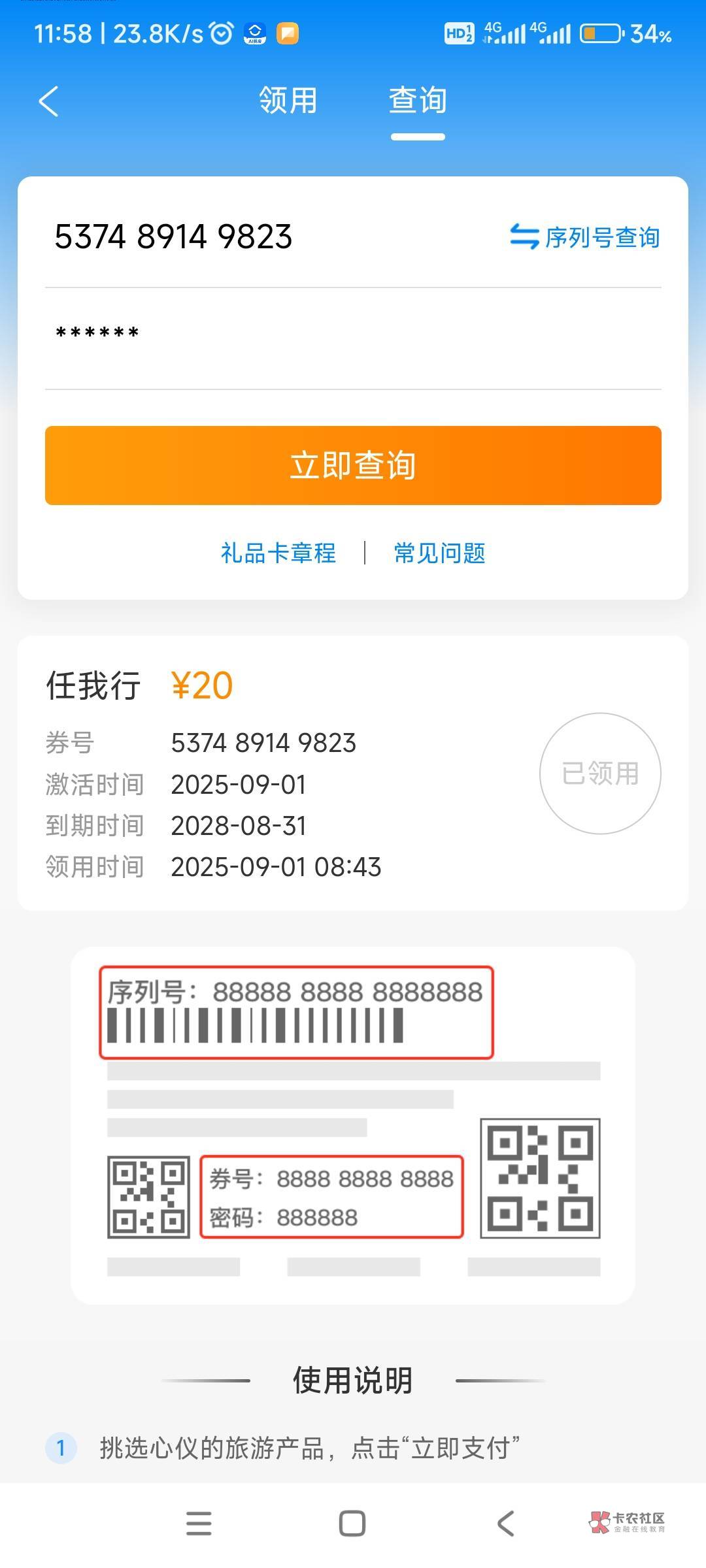 问问闲卡宝客服,有时是核销成功,但是显示失败