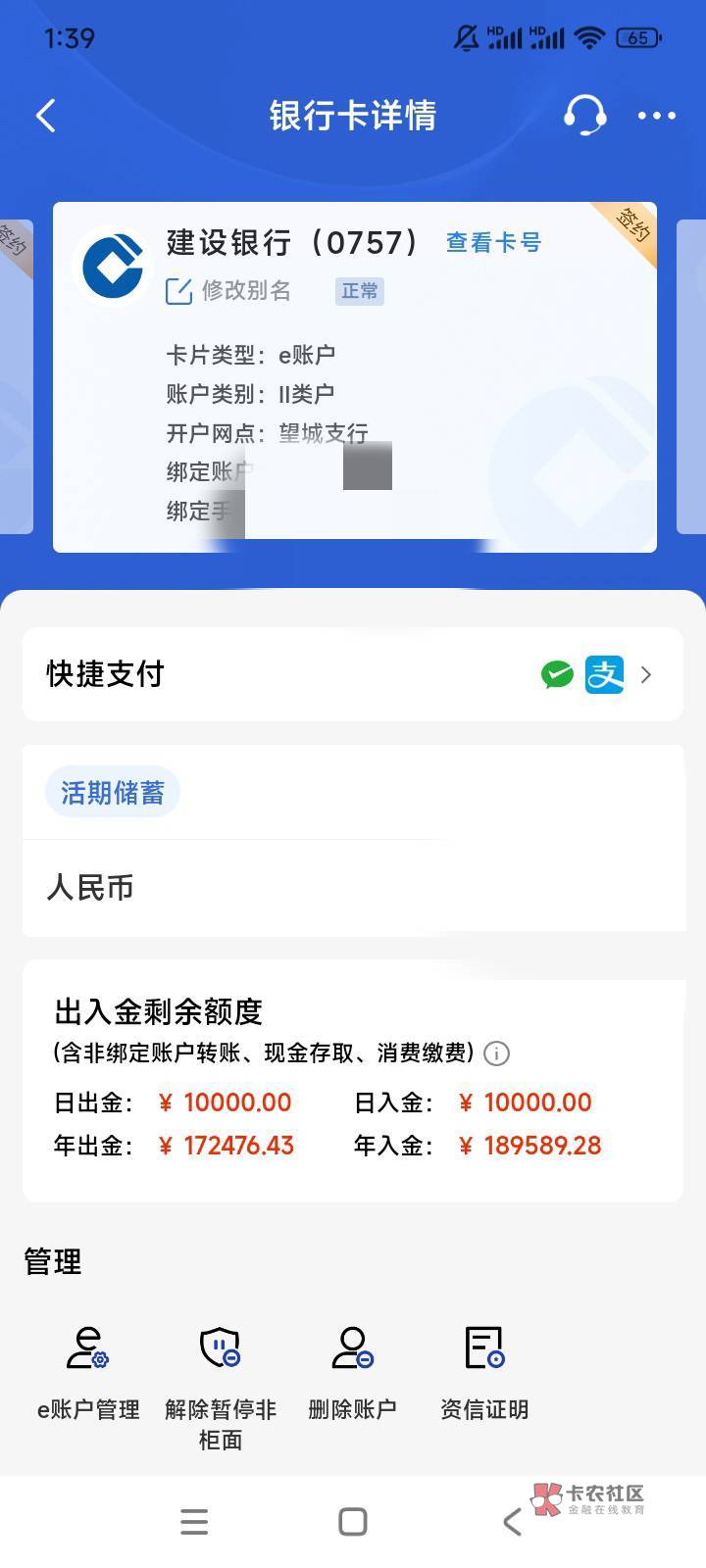 我的就是非柜几年了,然后用建行开的电子二类,能绑定支付宝微信美团这些消费,还有建行数字钱包也能用