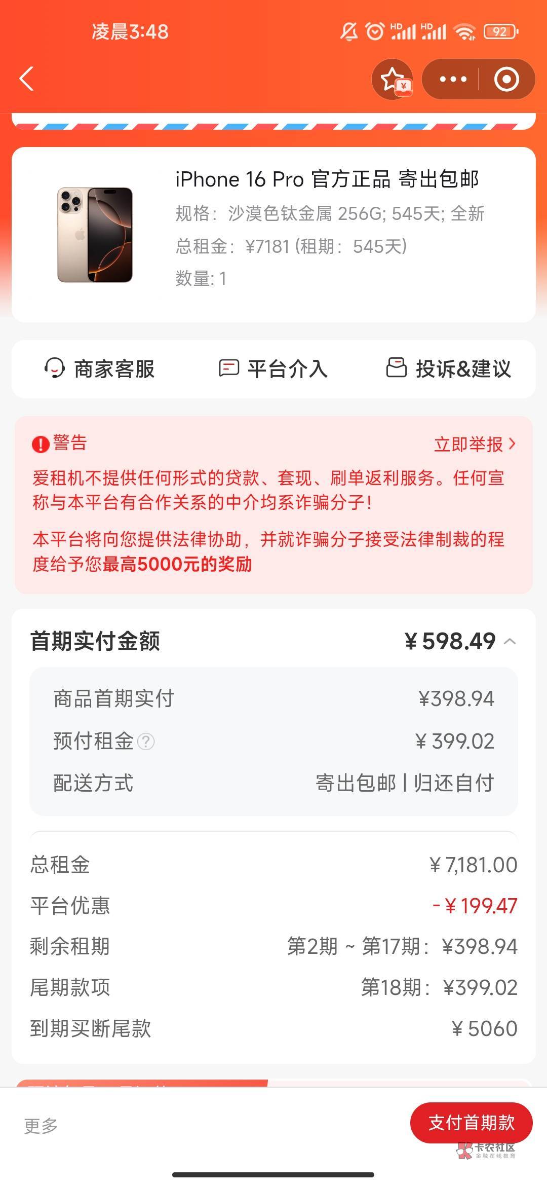 有没有老哥知道这是不是监管的。我平台下单了没有电话也没有微信加我。直接审核通过了付钱。打电话问商家说是全新无锁的。会不会骗我,没有聊天记录打电话问的