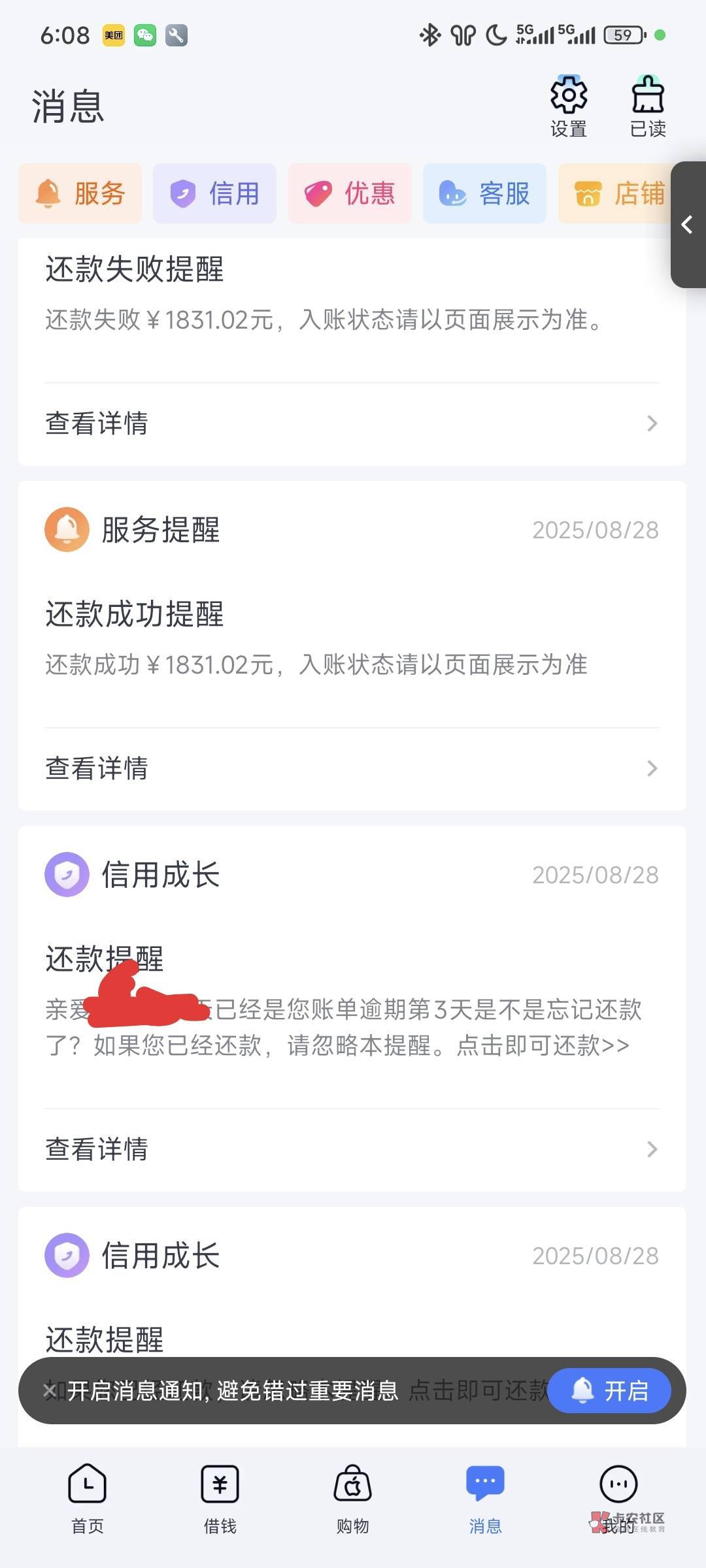 购物,1初一力信保理的,跟客服要了停催7天,要十五号才能还,就怕影响征信