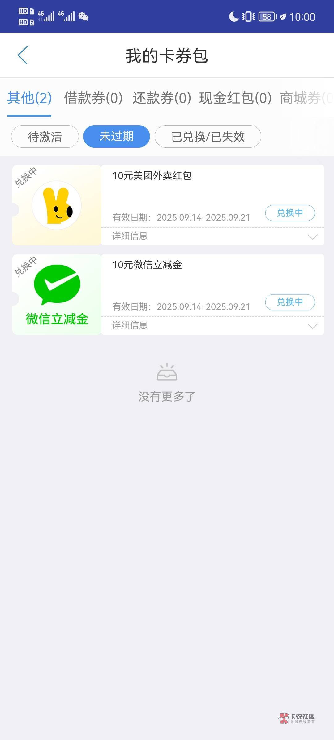 昨天抢的,卡券里都不显示