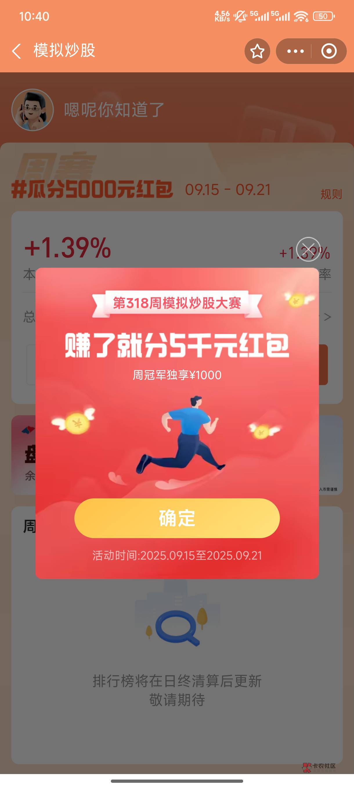 1. 参与规则:用户开启模拟炒股小程序服务,即可获得50万虚拟炒股资金,并可以进行模拟A股买卖交易,具体交易规则见模拟炒股服务中的使用说明; (1) 参赛资格:用户需在当前自然周中最后一个交易日下午15点前,开启模拟炒股或者访问活动页面,且本周有过持仓股票,即视为报名当前周赛并参与周赛排行