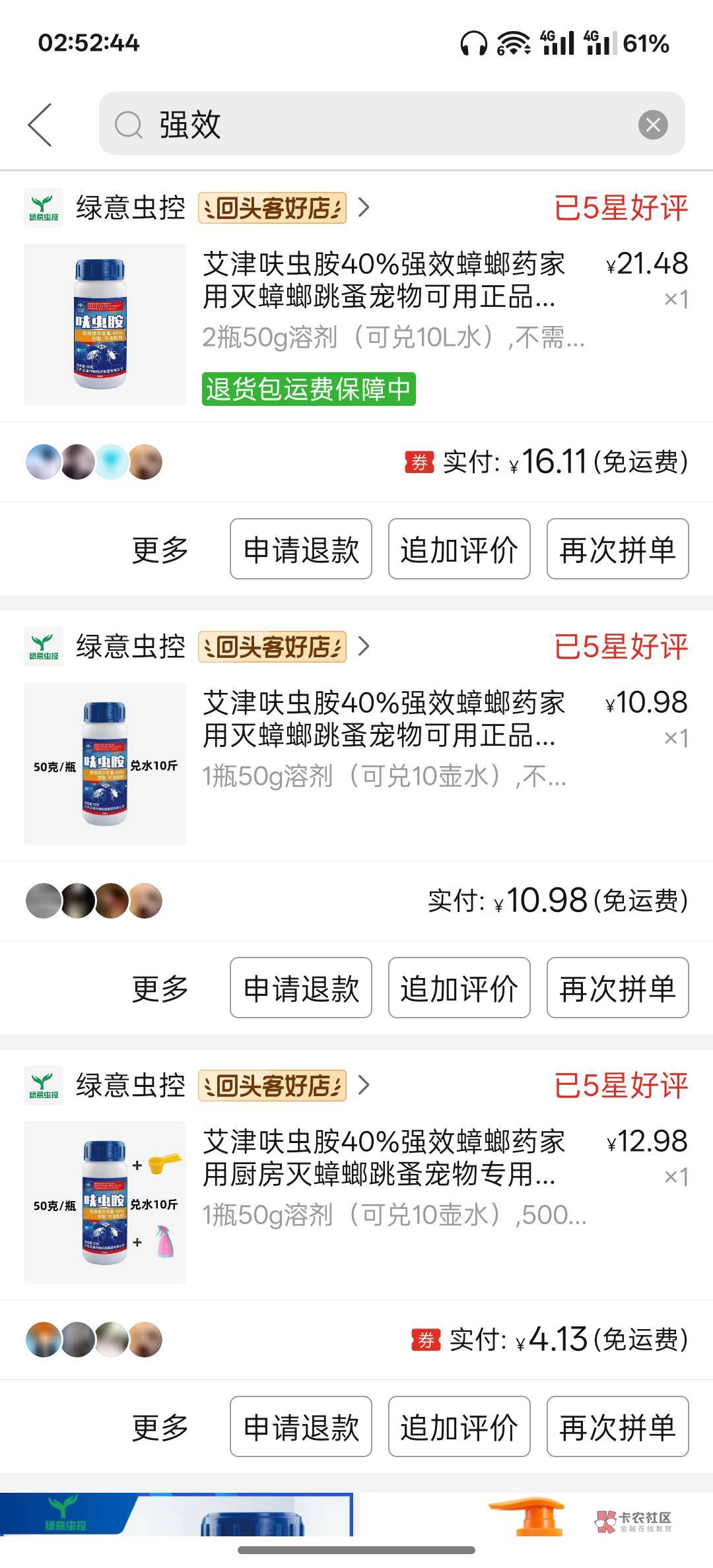 没买对东西,已经三个月没见过小虫子和蟑螂了。一个星期喷一次。